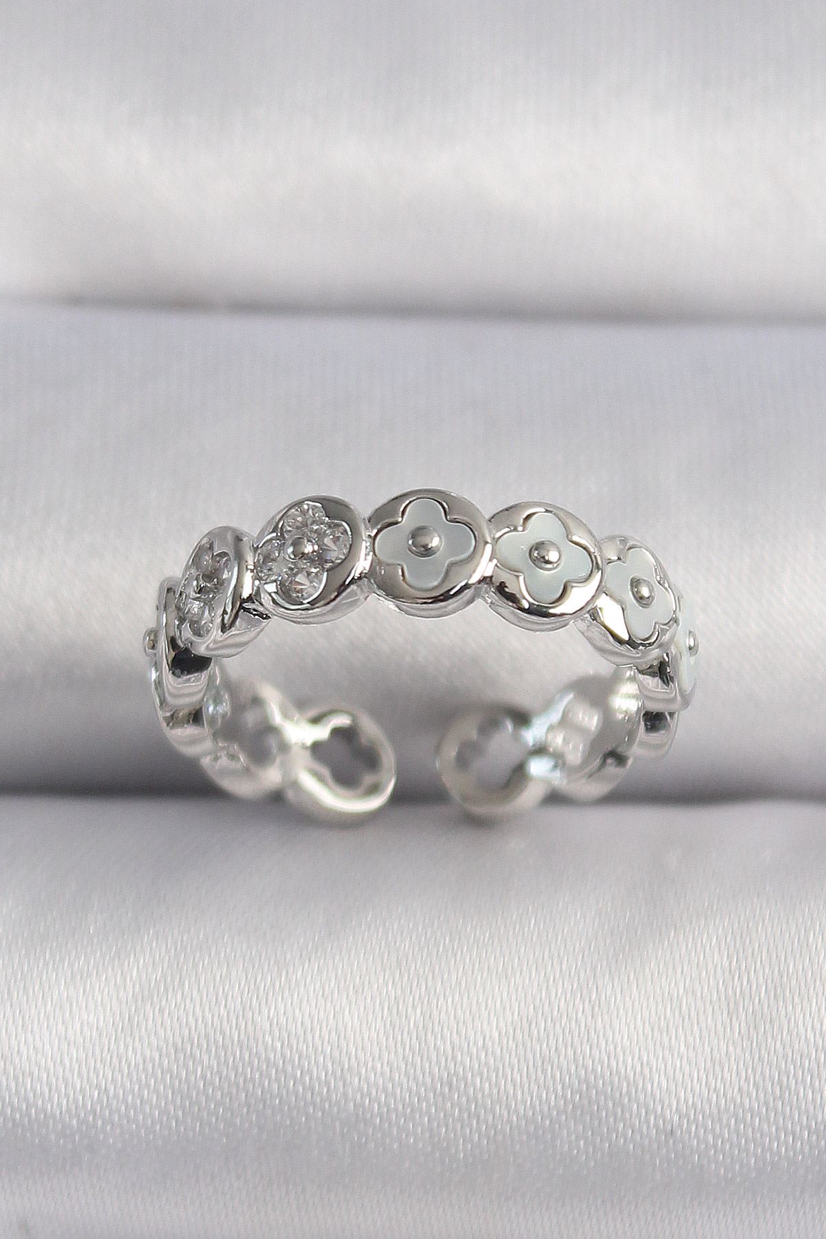 YRTCL Pirinç Gümüş Renk Beyaz Sedefli Yonca Model Kadın Yüzük