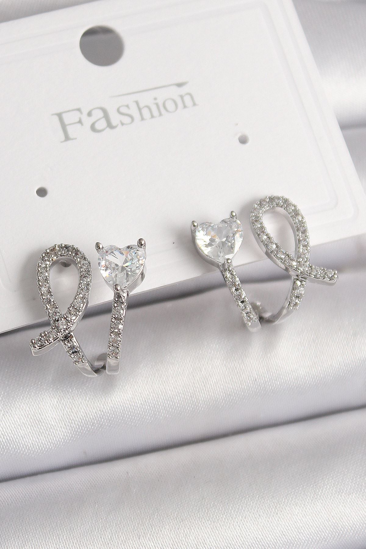 YRTCL Pirinç Gümüş Renk Düğüm Model Zirkon Taşlı Kalp Detay Kadın Küpe
