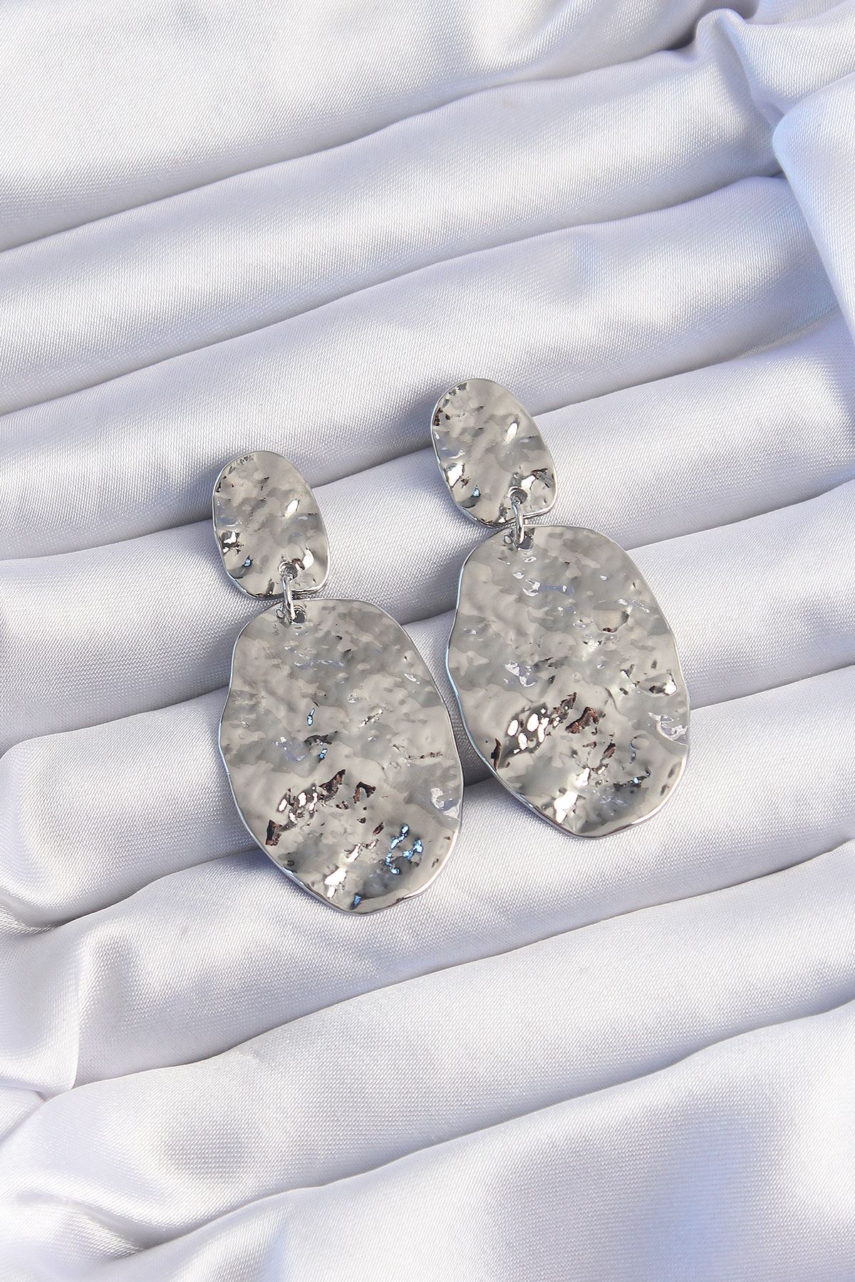 YRTCL Pirinç Gümüş Renk Ezme Plaka Küpe