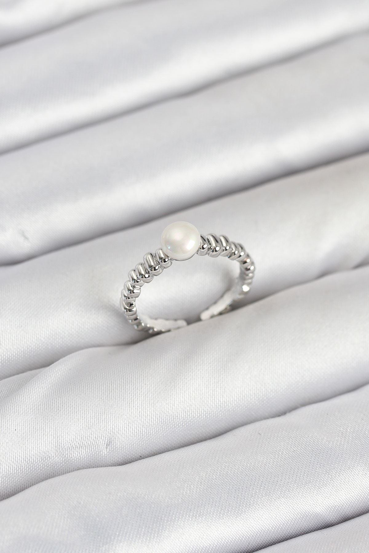 YRTCL Pirinç Gümüş Renk Göbek İnci Model Kadın Yüzük