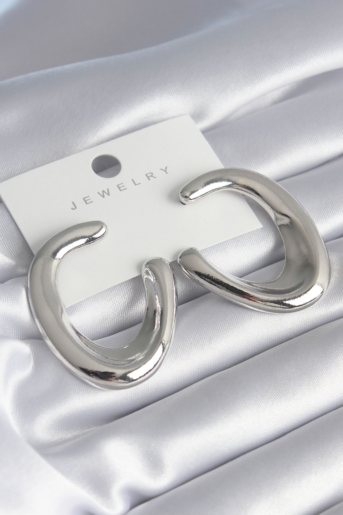 YRTCL Pirinç Gümüş Renk Halka Model Kadın Küpe