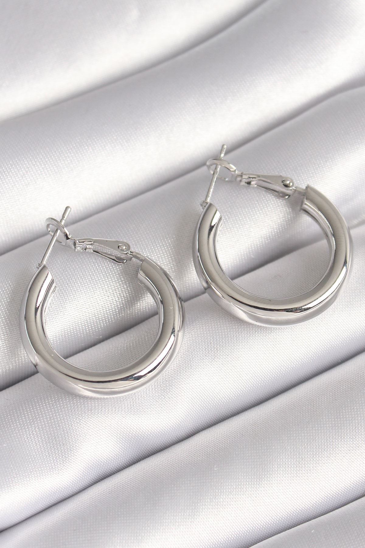 YRTCL Pirinç Gümüş Renk Halka Model Kadın Küpe