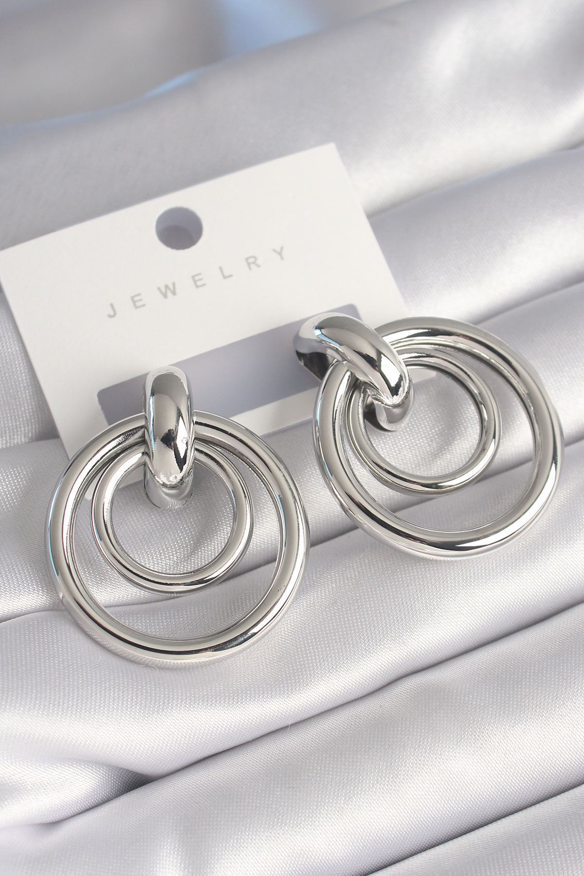 YRTCL Pirinç Gümüş Renk Halka Model Kadın Küpe