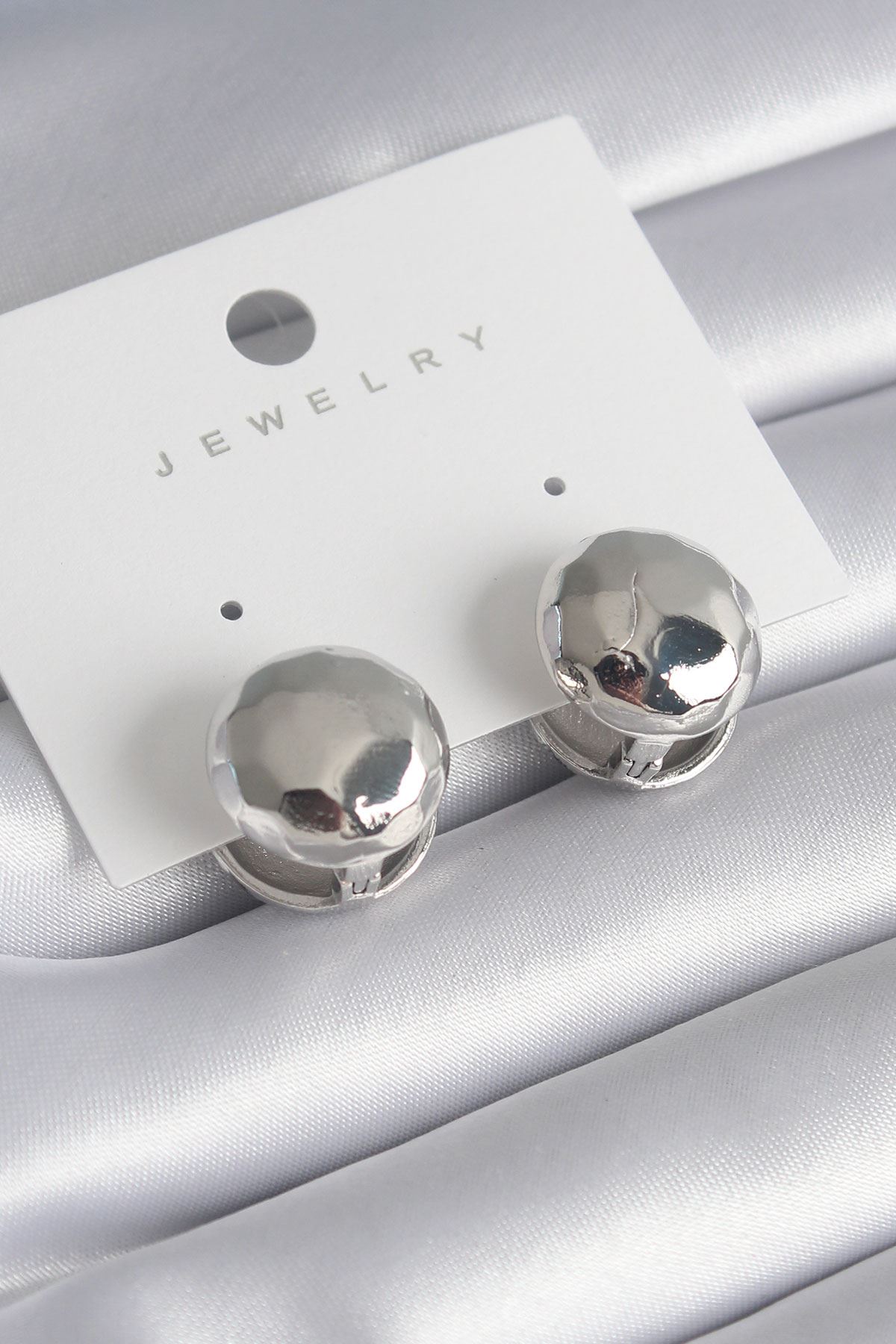 YRTCL Pirinç Gümüş Renk İşleme Detay Top Model Kadın Küpe