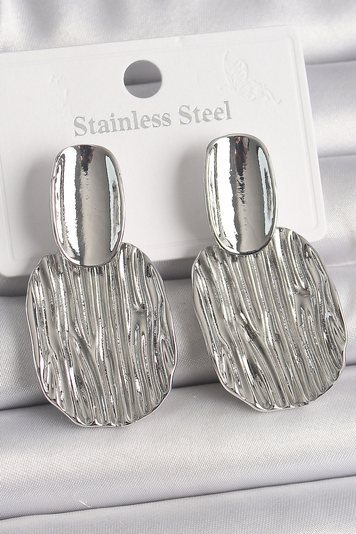 YRTCL Pirinç Gümüş Renk İşlemeli Kare Plaka Model Kadın Küpe