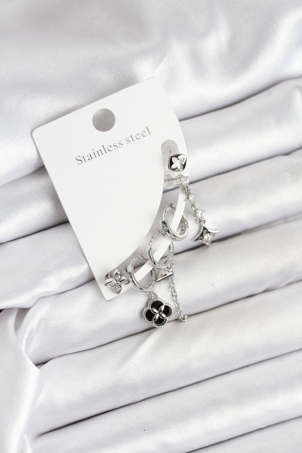 YRTCL Pirinç Gümüş Renk Kadın Set Küpe