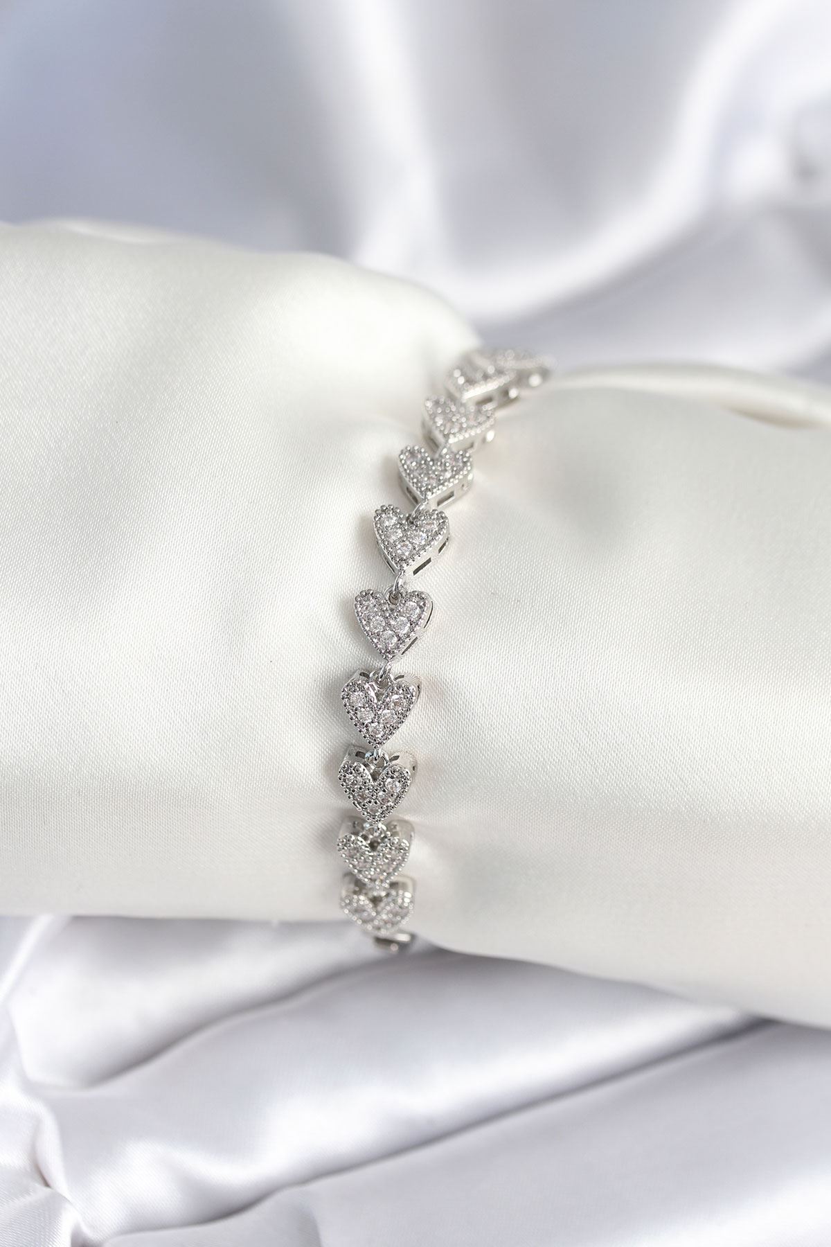 YRTCL Pirinç Gümüş Renk Kalp Model Kadın Bileklik