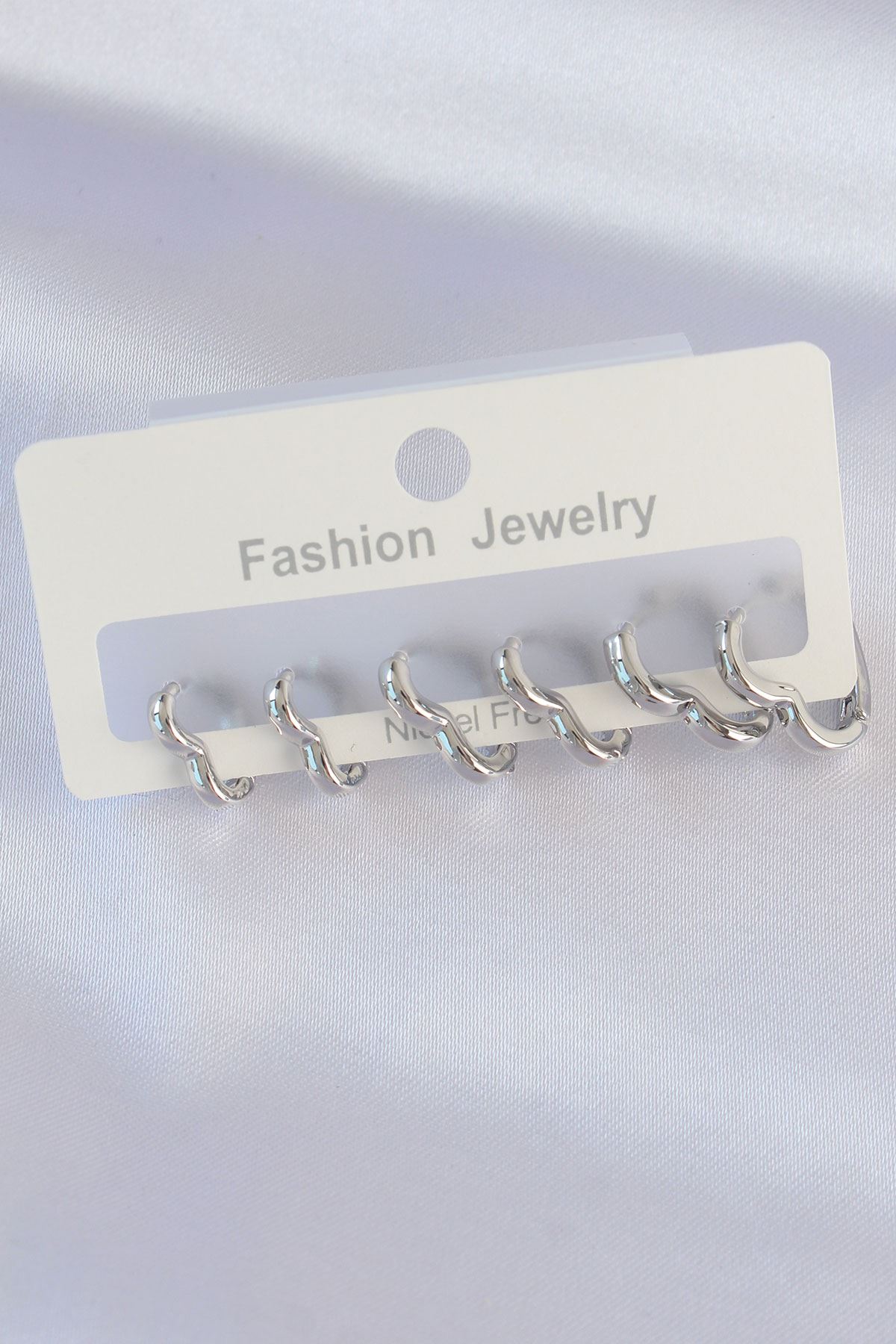 YRTCL Pirinç Gümüş Renk Kalp Model Küpe Seti