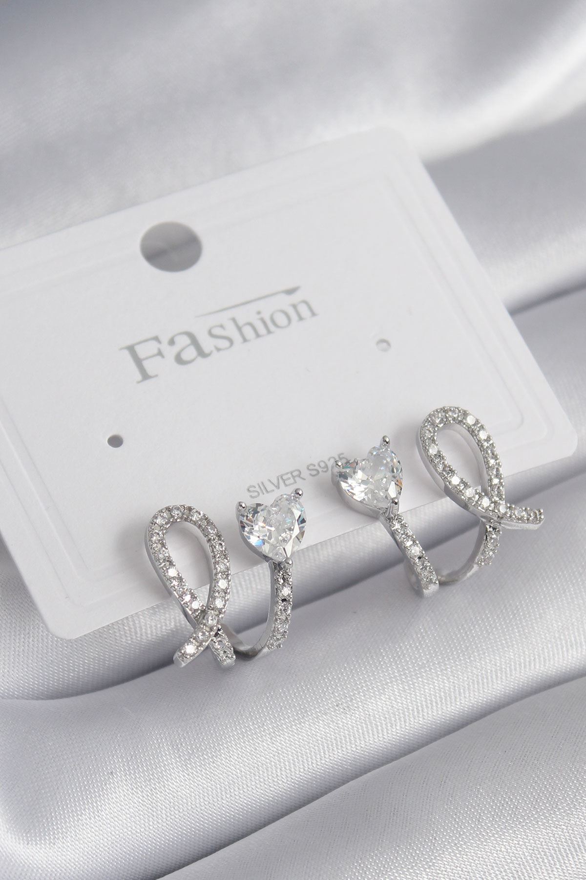 YRTCL Pirinç Gümüş Renk Kalp Model Zirkon Taşlı Kadın Küpe