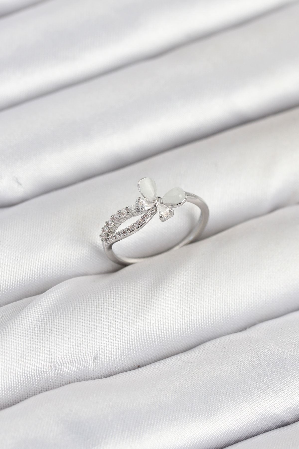 YRTCL Pirinç Gümüş Renk Zirkon Taşlı Beyaz Mineli Kelebek Detay Kadın Yüzük