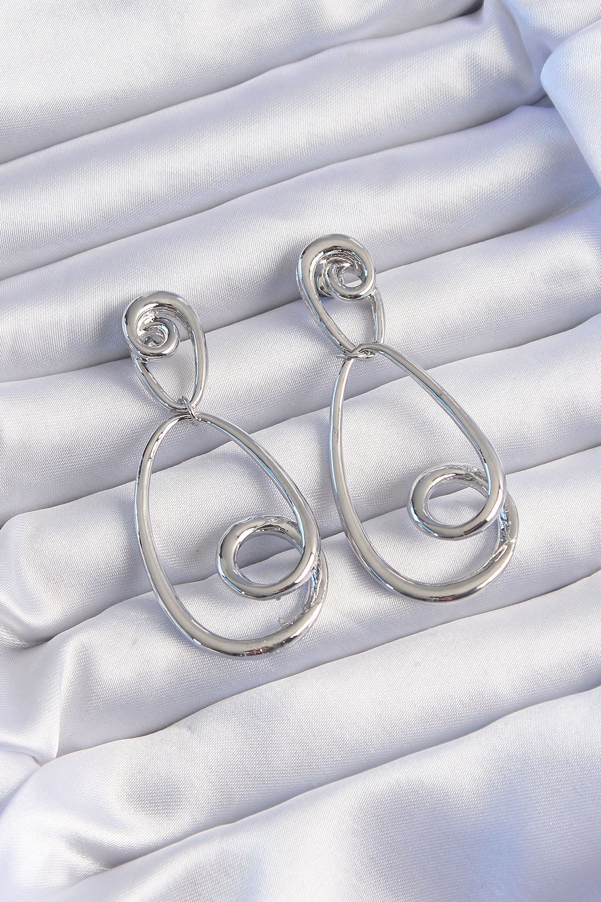 YRTCL Pirinç Gümüş Renk Kıvrımlı Sallantılı Küpe
