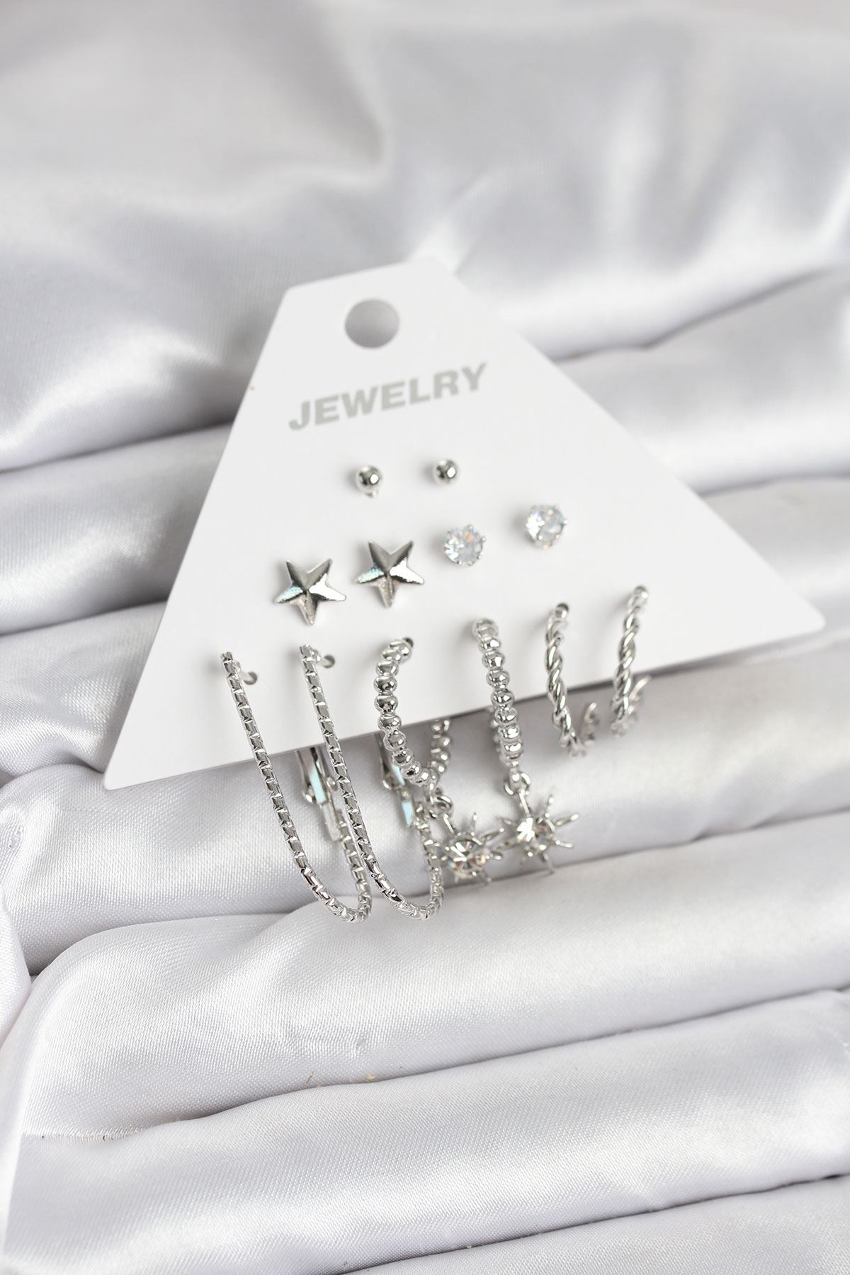 YRTCL Pirinç Gümüş Renk Küpe Seti 6'lı