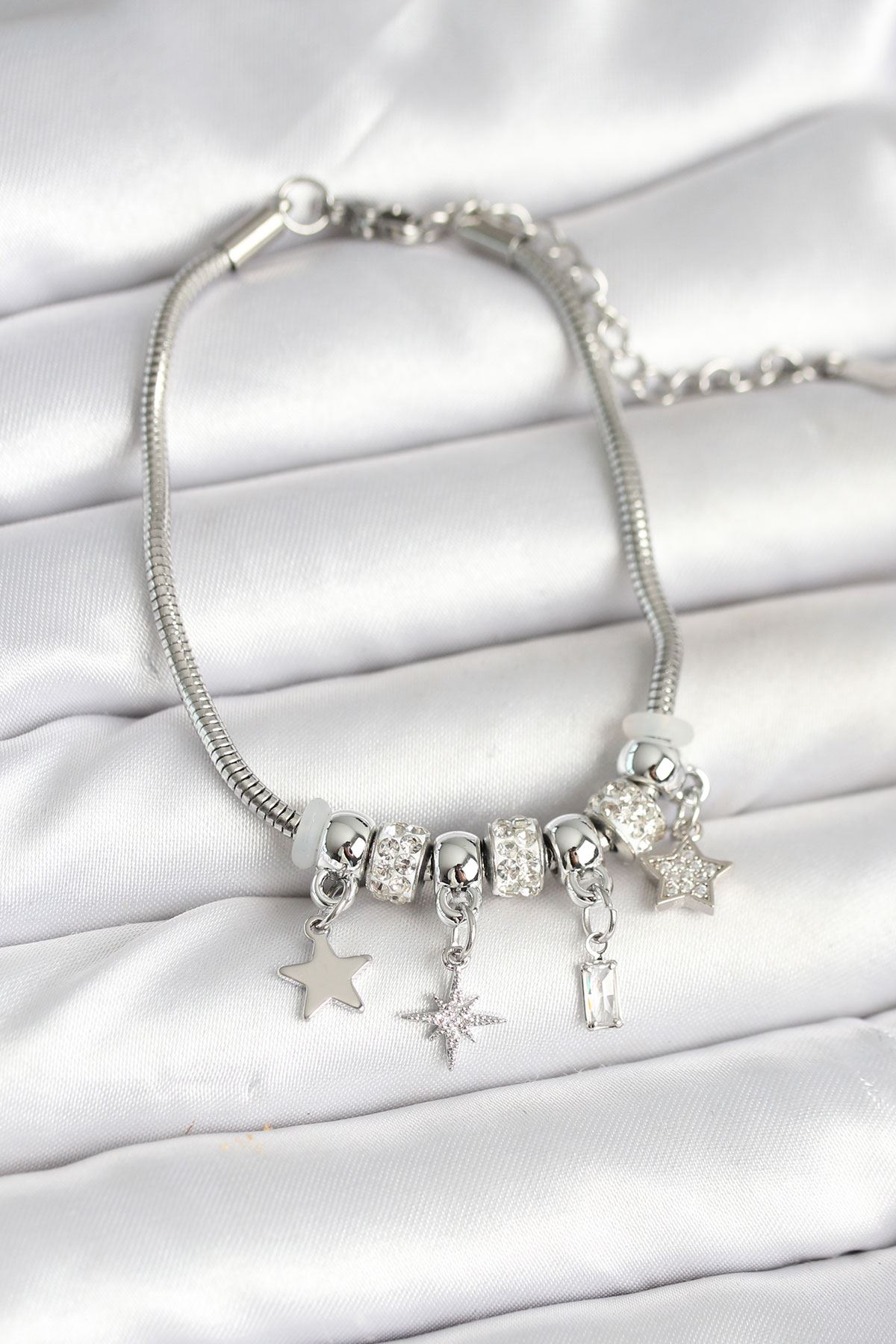 YRTCL Pirinç Gümüş Renk Kutup Yıldızı Charmlı Kadın Bileklik