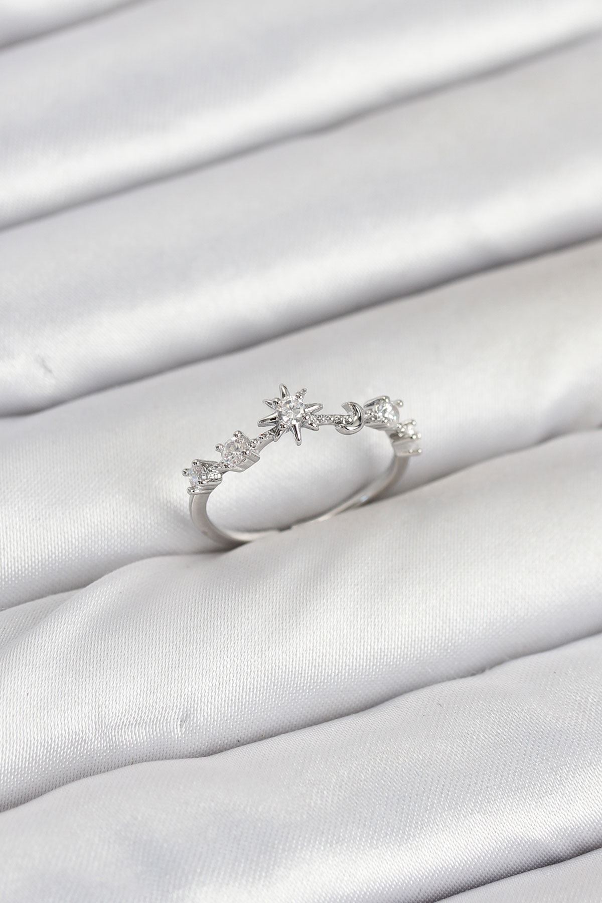 YRTCL Pirinç Gümüş Renk Zirkon Taşlı Yıldız Model Ayarlanabilir Kadın Yüzük