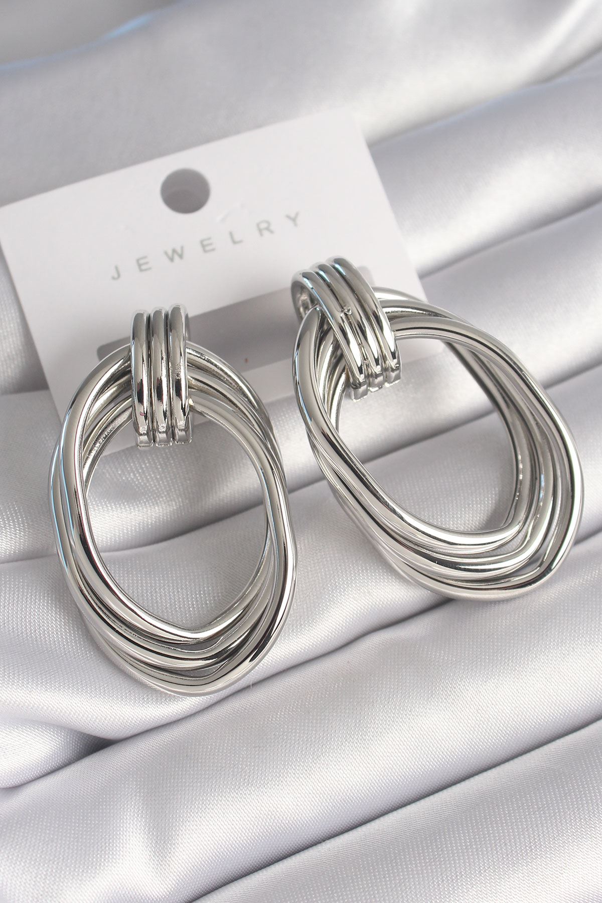 YRTCL Pirinç Gümüş Renk Oval Model Kadın Küpe