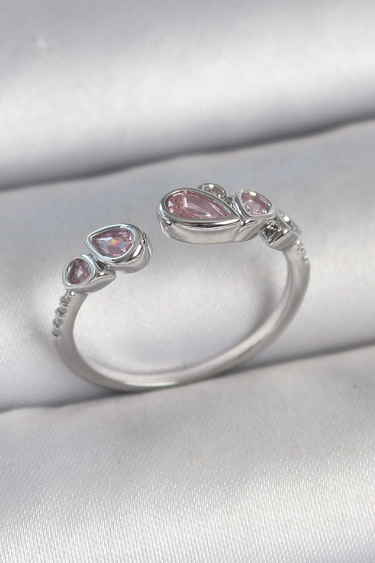 YRTCL Pirinç Gümüş Renk Pembe Damla Zirkon Taşlı Ayarlanabilir Model Kadın Yüzük