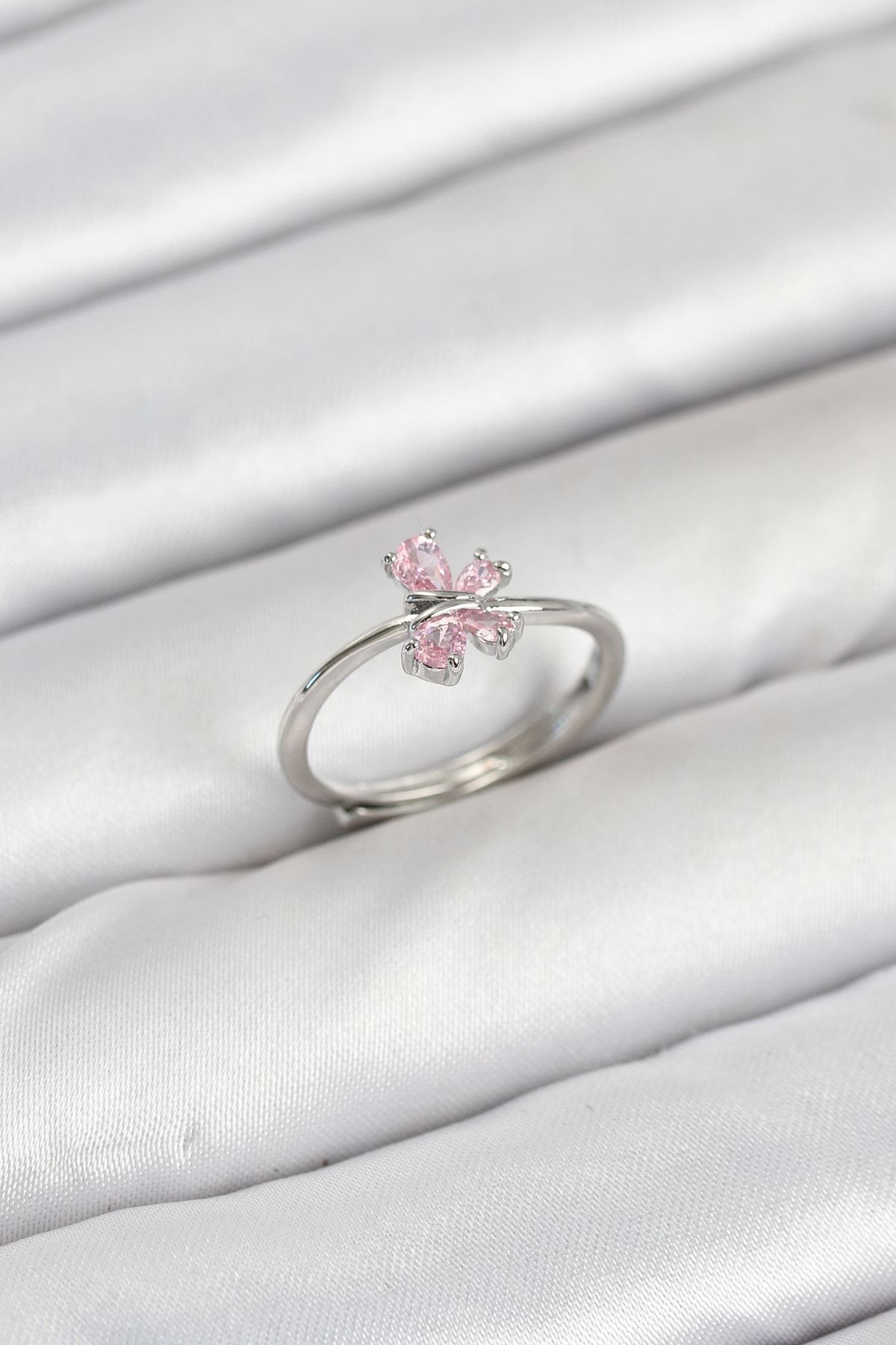 YRTCL Pirinç Gümüş Renk Pembe Kelebek Kadın Yüzük