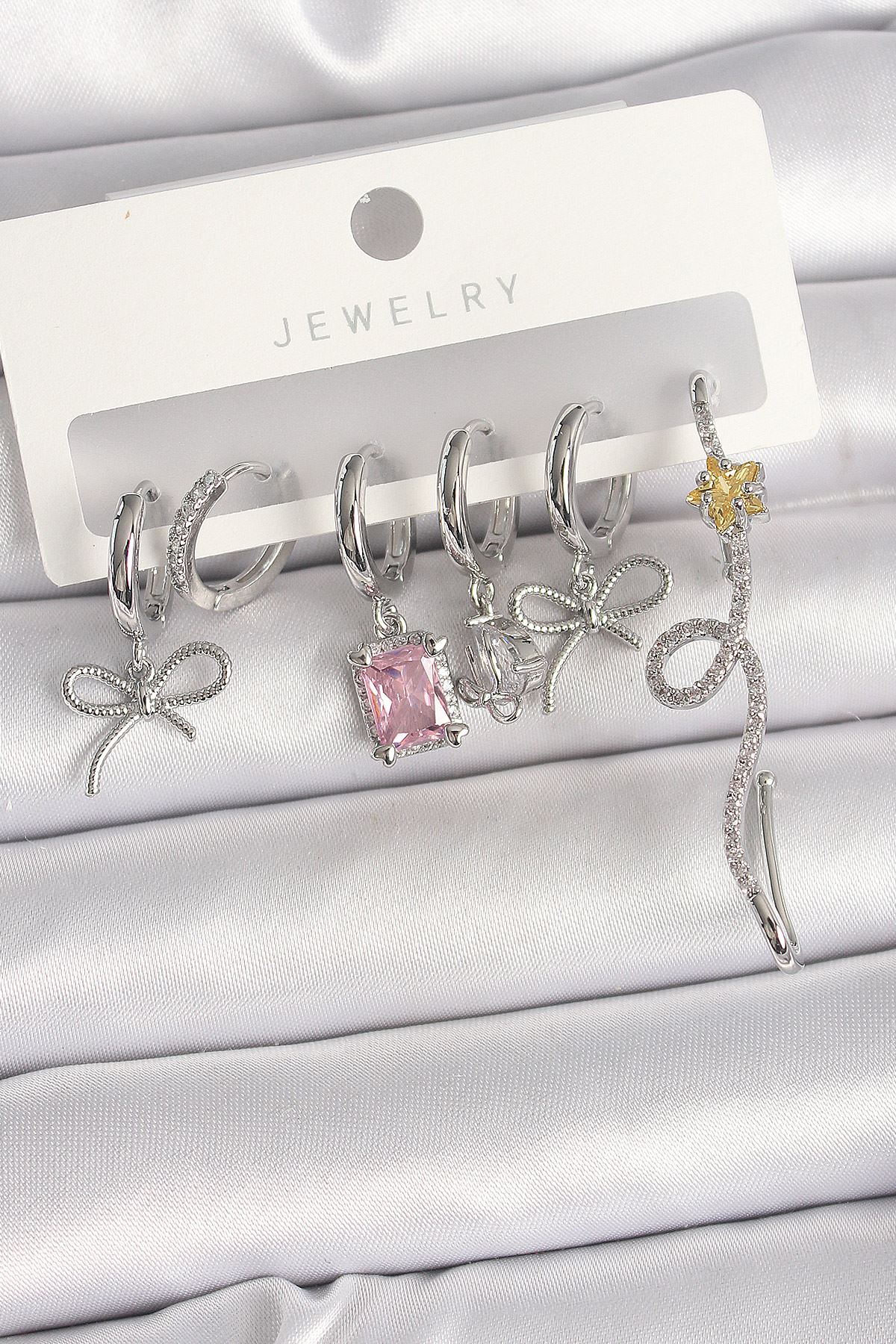 YRTCL Pirinç Gümüş Renk Zirkon Taşlı Çoklu Figür Kadın Küpe Seti