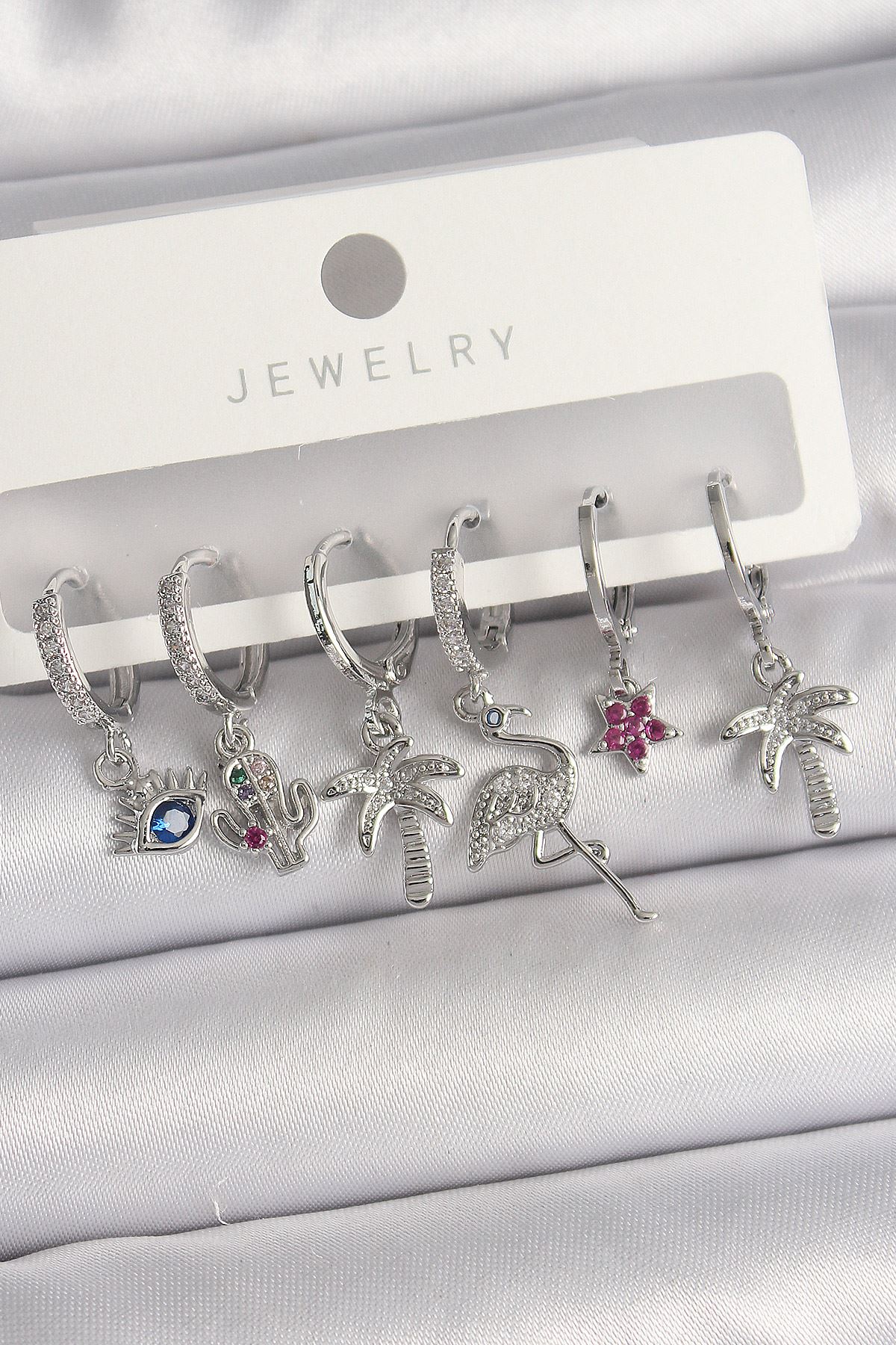 YRTCL Pirinç Zirkon Taşlı Yıldız Model Gümüş Renk 3'lü Çift Kadın Küpe Set