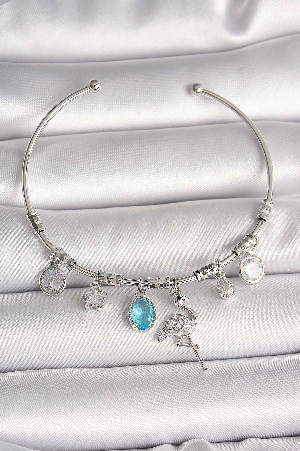 YRTCL Pirinç Gümüş Renk Sallantı Zirkon Taşlı Filaminga Figür Charm Kadın Bileklik