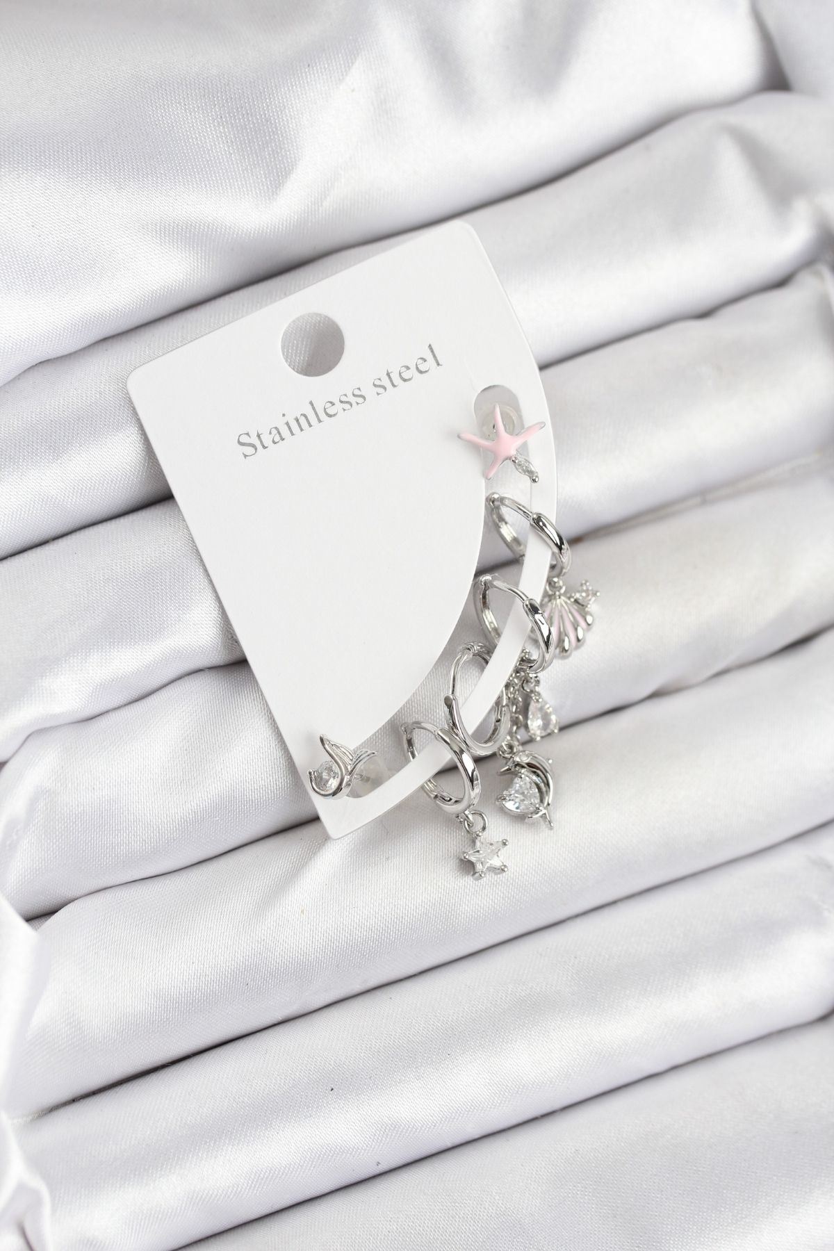 YRTCL Pirinç Gümüş Renk Set Küpe
