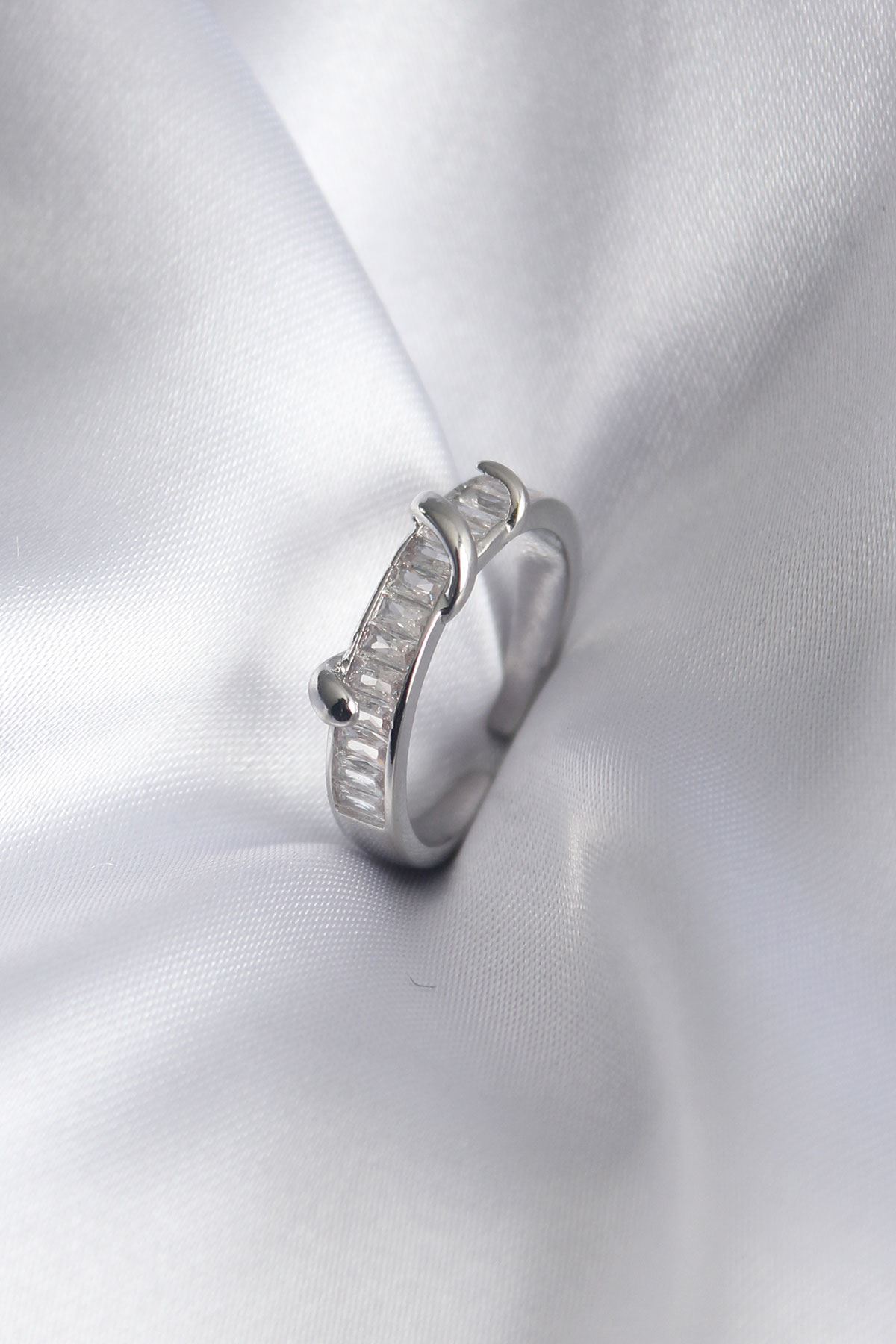YRTCL Pirinç Gümüş Renk Zirkon Taşlı Ayarlanabilir Yüzük