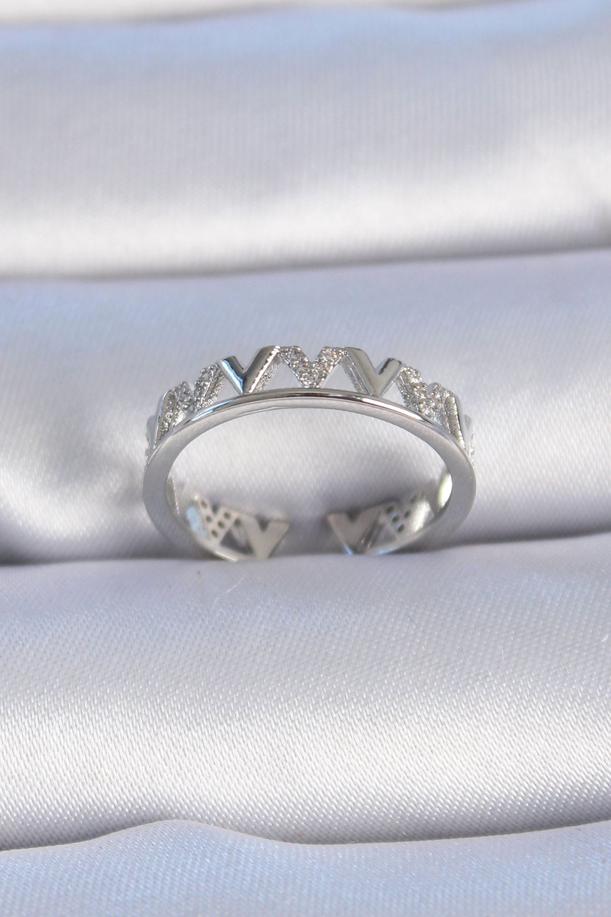 YRTCL Pirinç Gümüş Renk "V" Model Zirkon Taşlı Kadın Yüzük