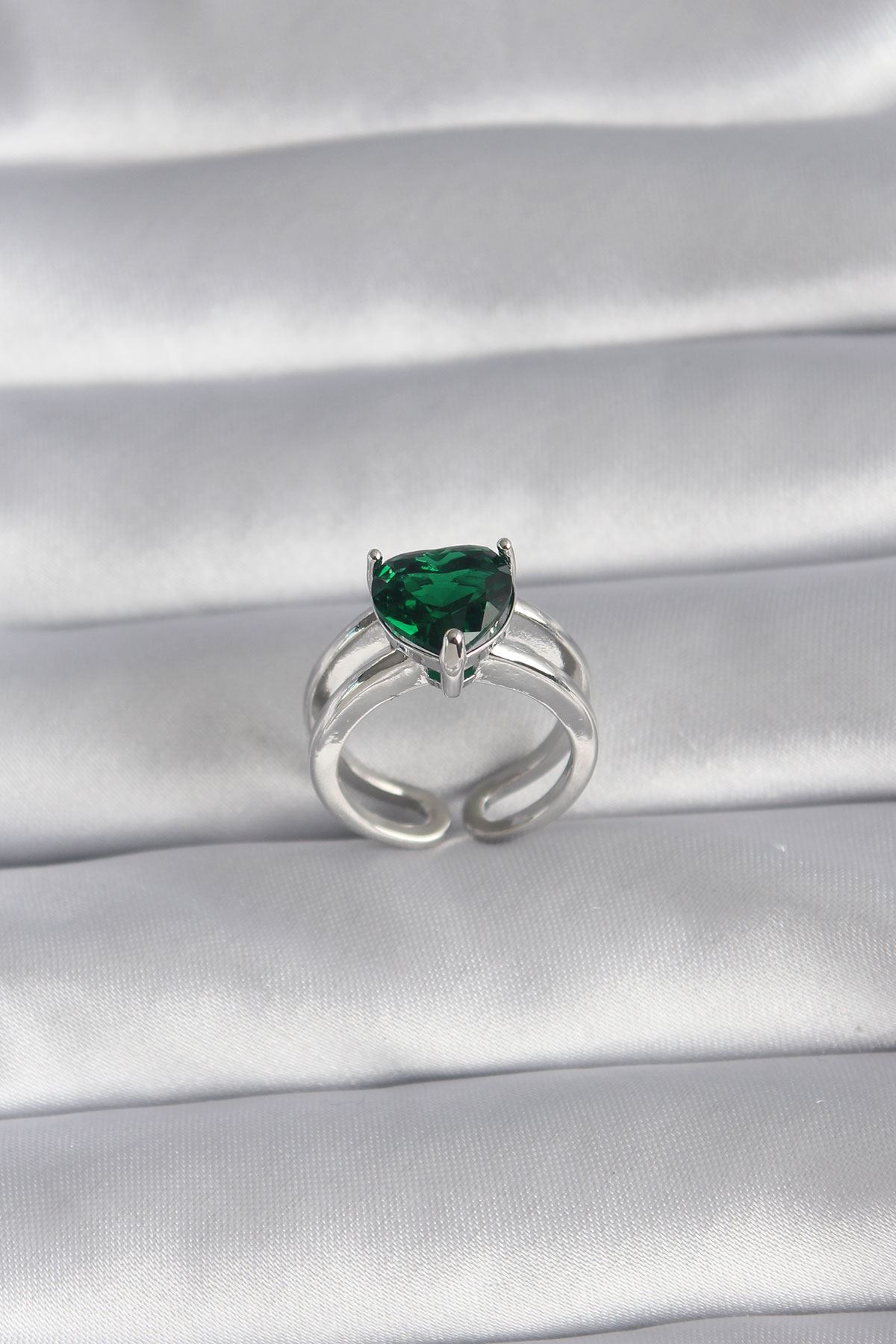 YRTCL Pirinç Gümüş Renk Yeşil Zirkon Taşlı Tek Taş Model Kadın Yüzük