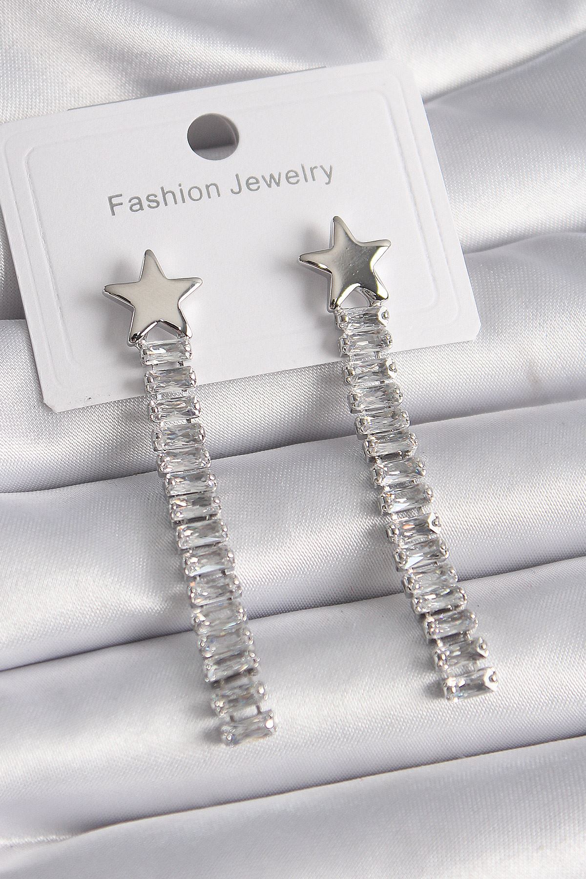 YRTCL Pirinç Gümüş Renk Yıldız Model Su Yolu Zirkon Taş Kadın Küpe