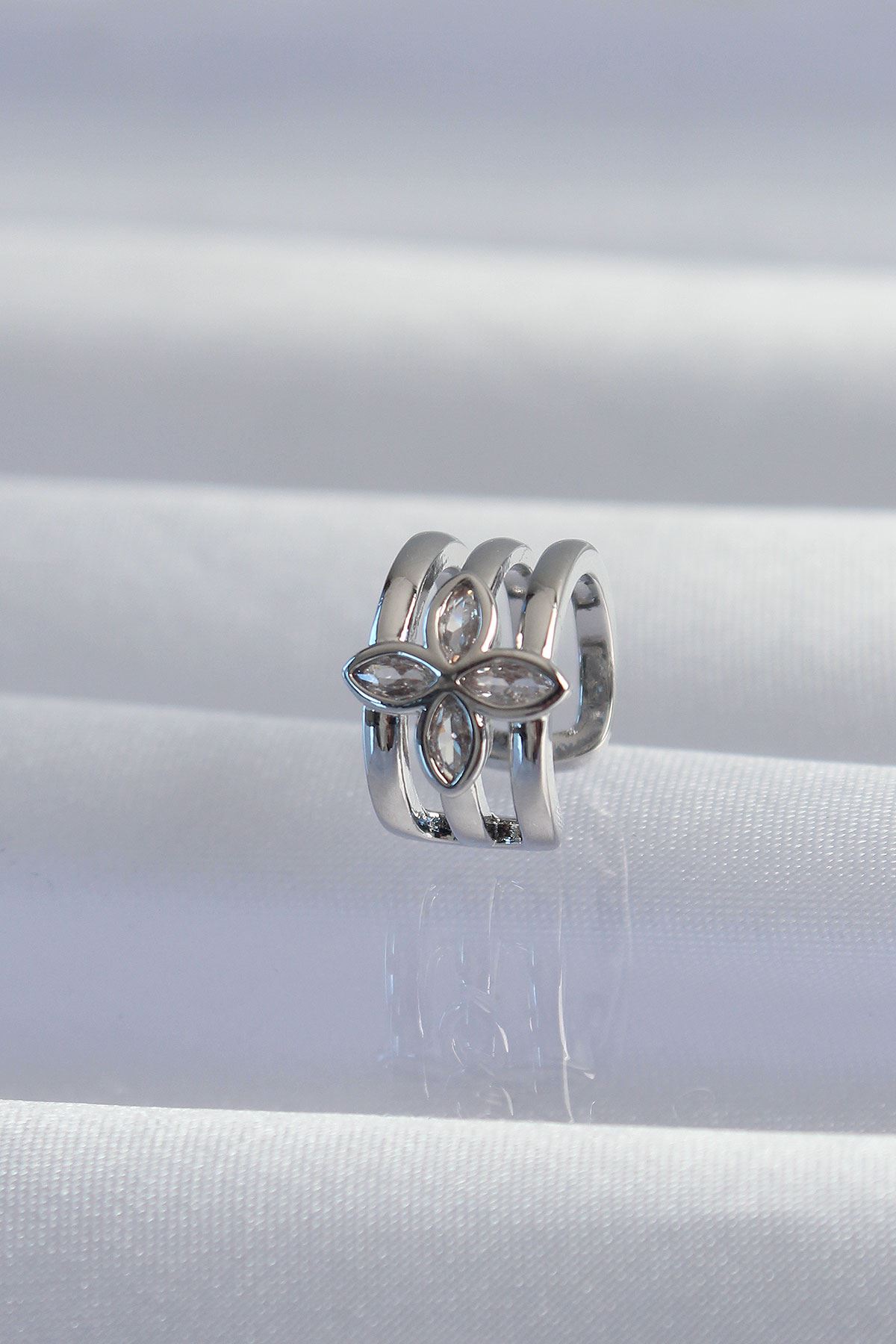 YRTCL Pirinç Gümüş Renk Yonca Earcuff Küpe