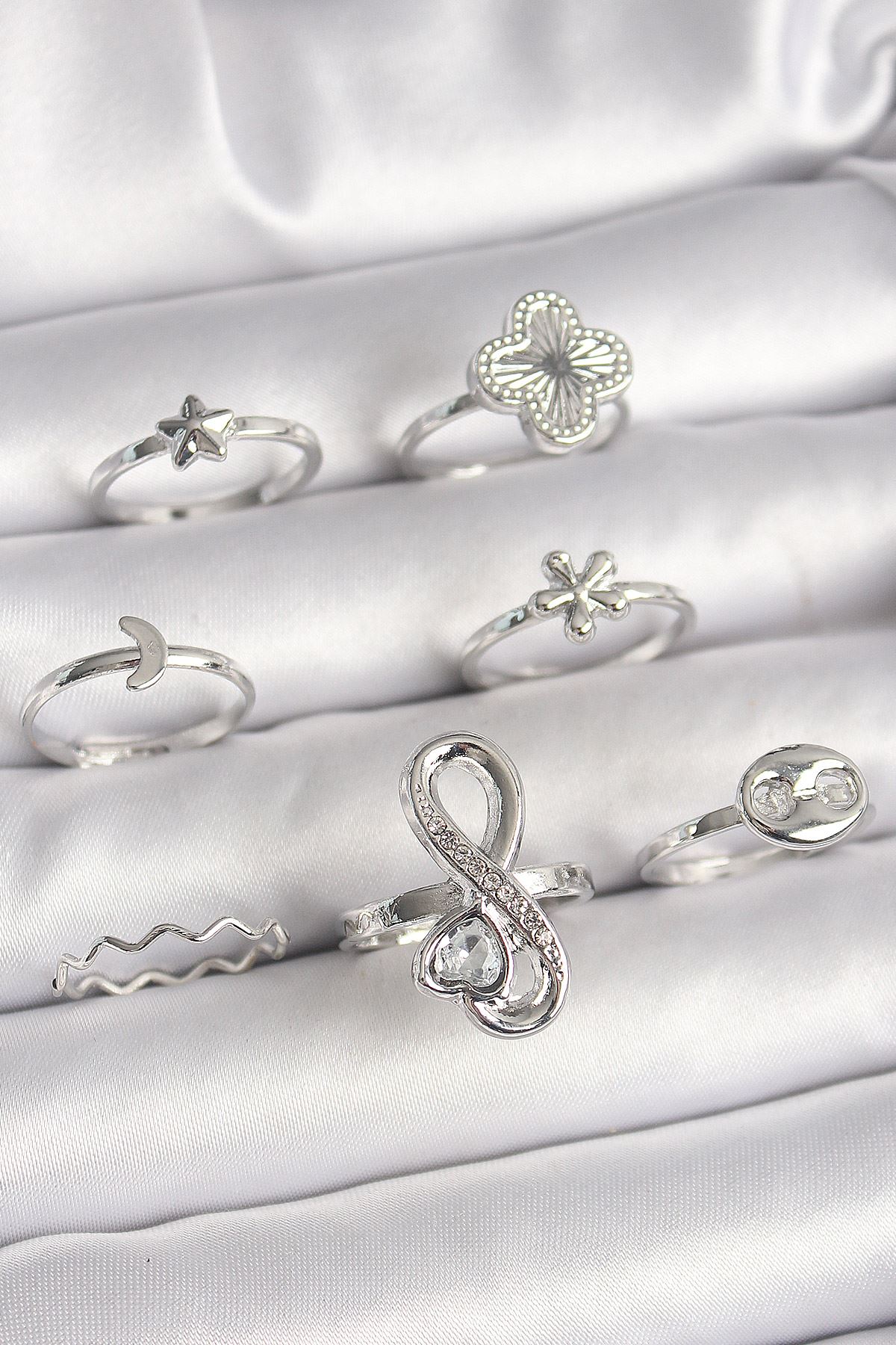 YRTCL Pirinç Gümüş Renk Yonca Figür Sonsuzluk Zirkon Taşlı Kalp Detay Kadın Yüzük Kombini