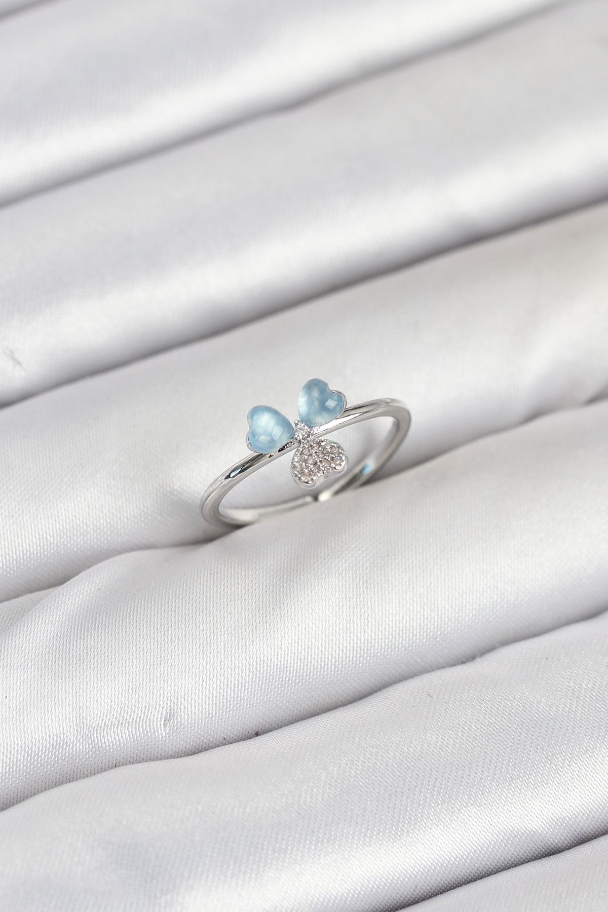 YRTCL Pirinç Gümüş Renk Ayarlanabilir Zirkon Taşlı Kelebek Model Kadın Yüzük