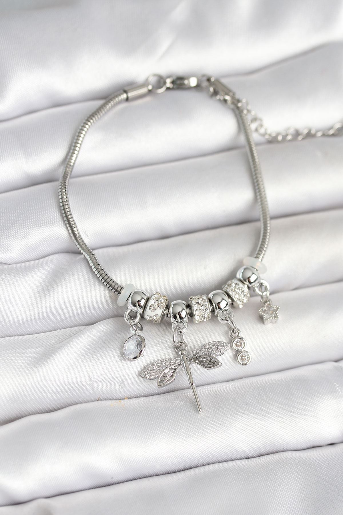 YRTCL Pirinç Gümüş Renk Yusufçuk Charmlı Kadın Bileklik