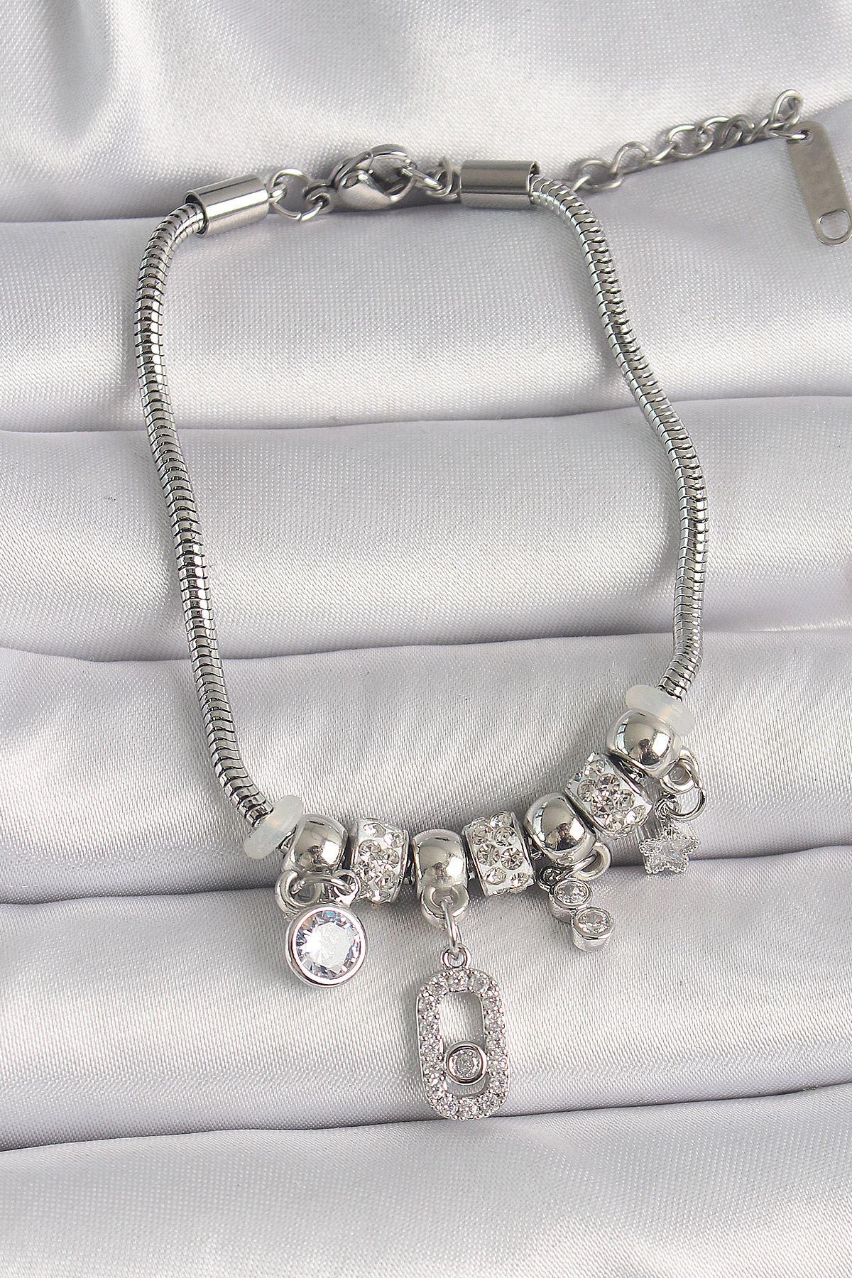 YRTCL Pirinç Gümüş Renk Zincir Sallantı Zirkon Taşlı Messika Figür Yıldız Detay Kadın Bileklik