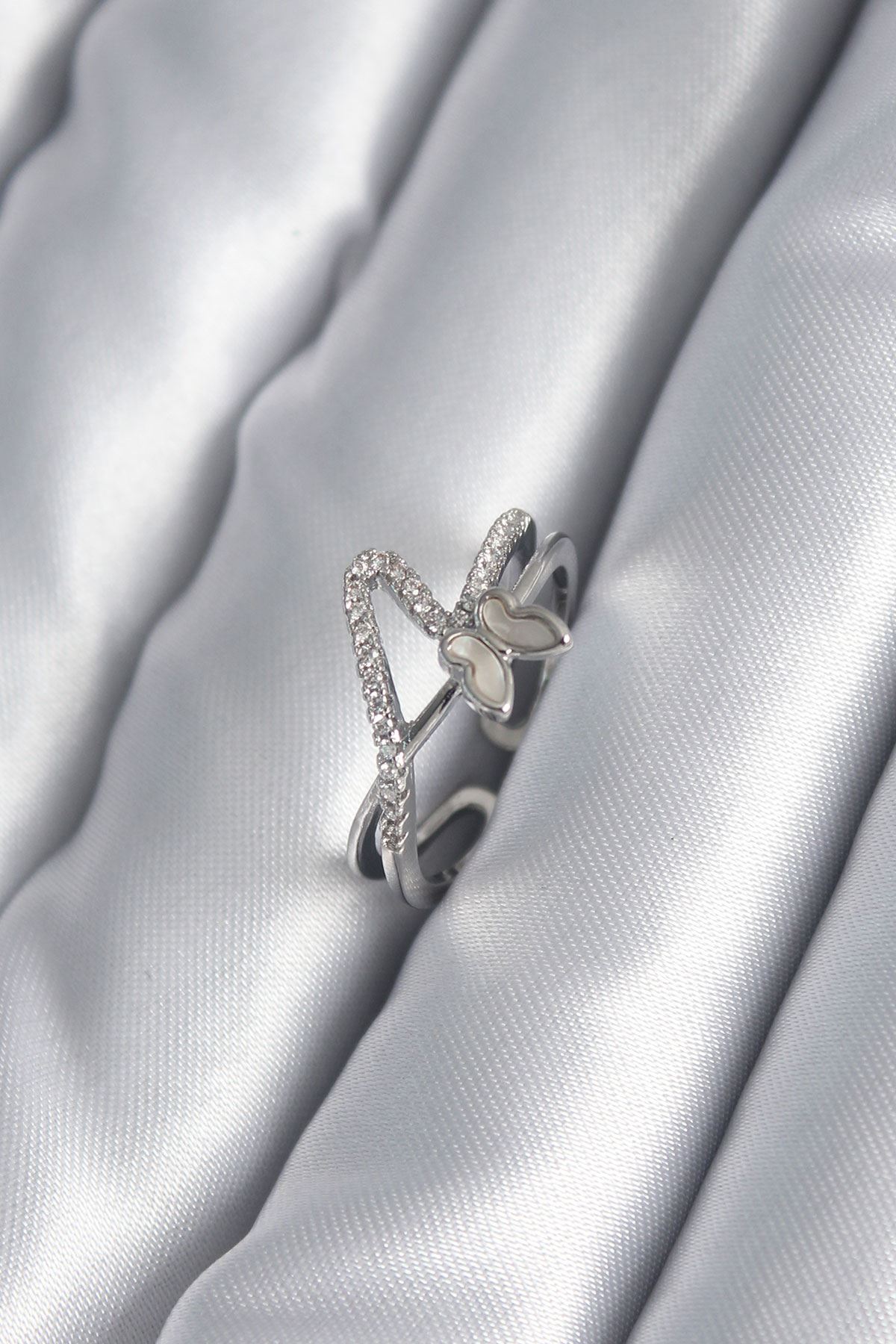 YRTCL Pirinç Gümüş Renk Zirkon Taş Detay Kelebek Model Kadın Yüzük