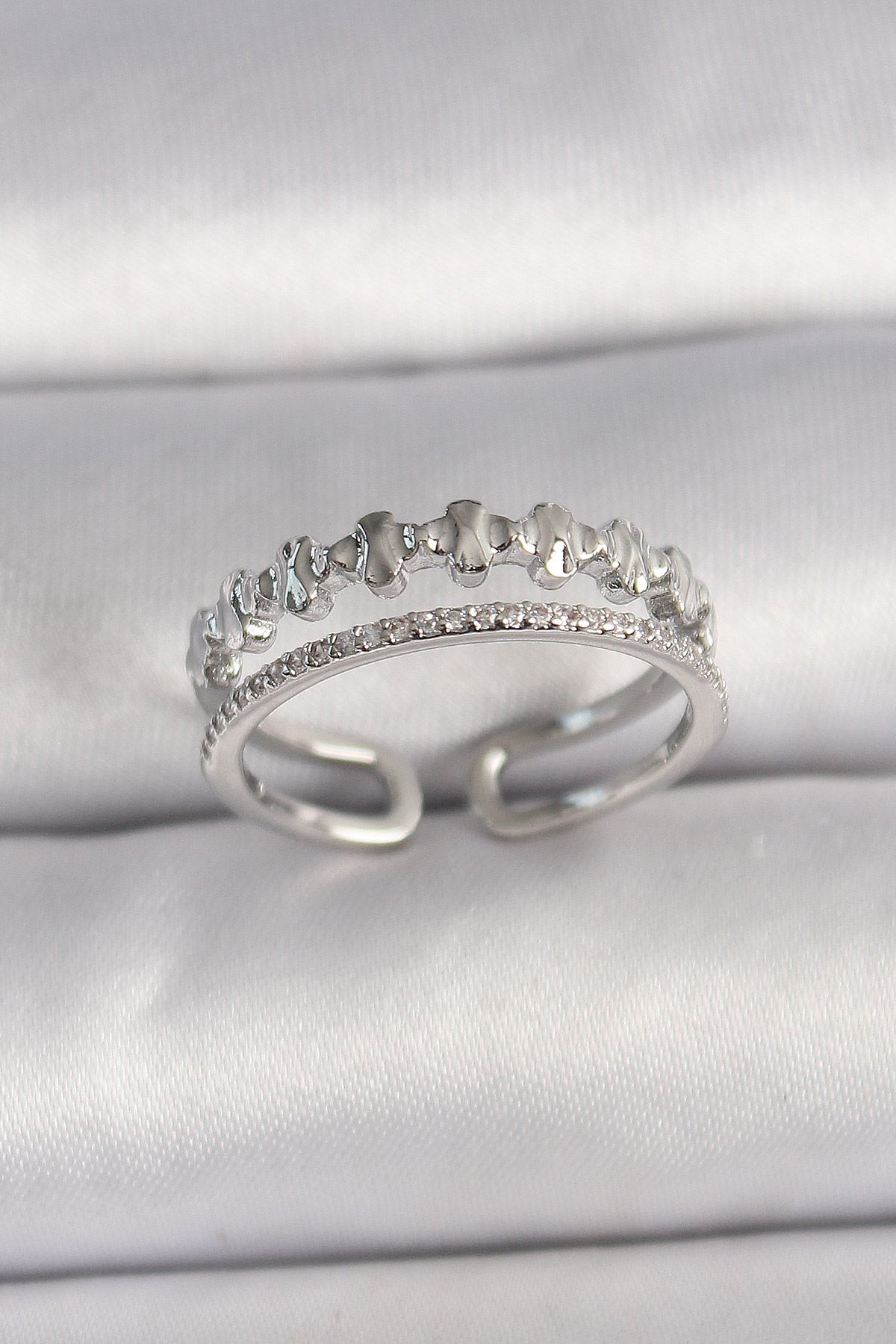 YRTCL Pirinç Gümüş Renk Zirkon Taş Detaylı Ayarlanabilir Kadın Yüzük