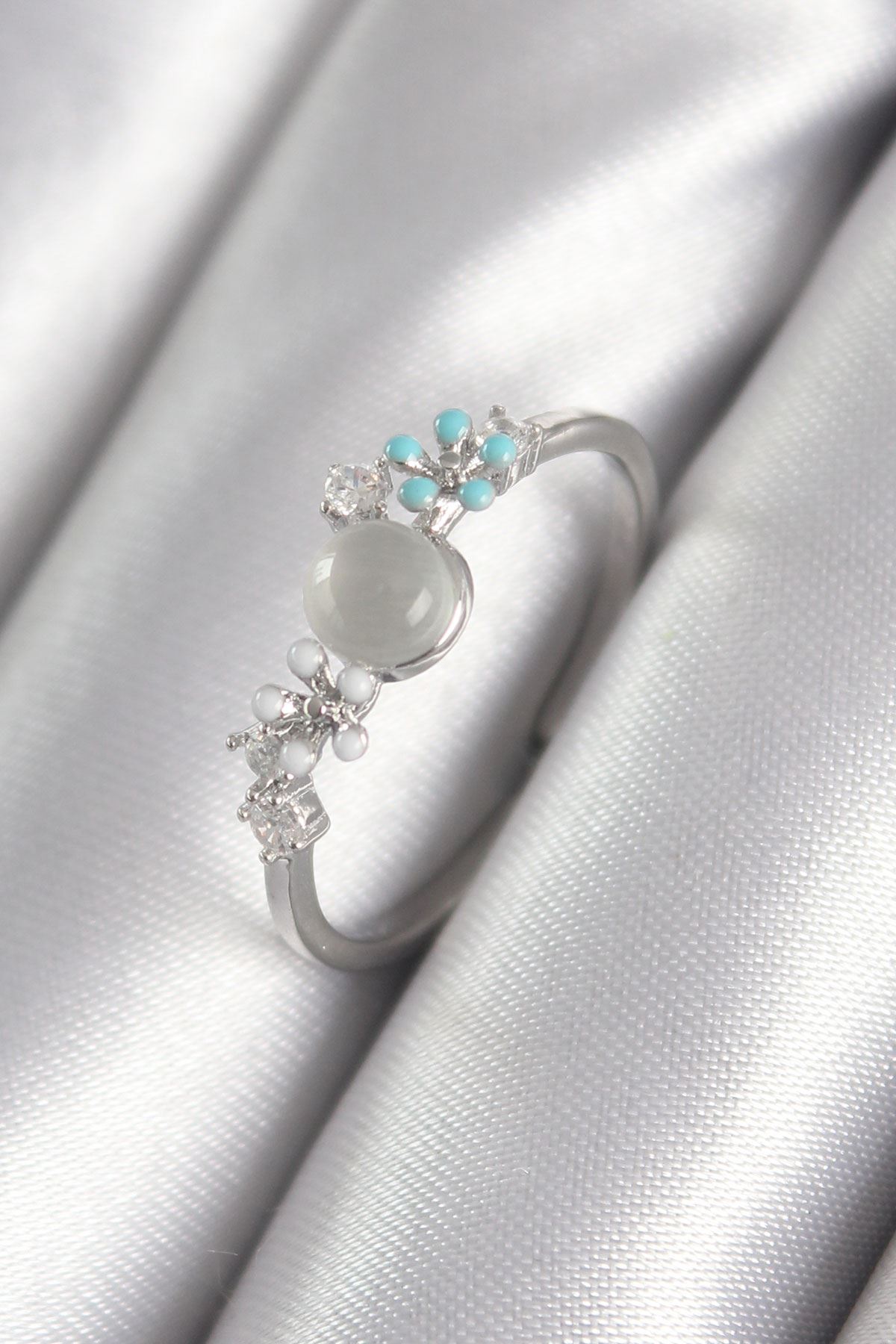 YRTCL Pirinç Gümüş Renk Zirkon Taş Detaylı Beyaz Sedefli Çiçek Model Kadın Yüzük