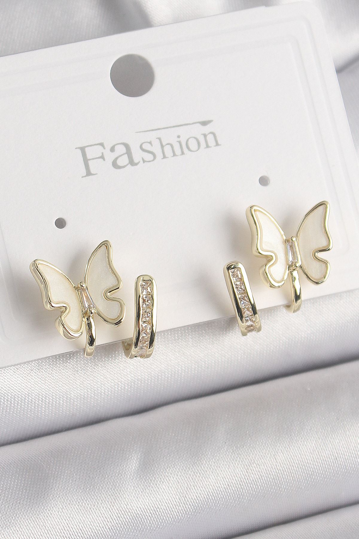 YRTCL Pirinç Gümüş Renk Zirkon Taş Detaylı Beyaz Sedefli Kelebek Model Kadın Küpe