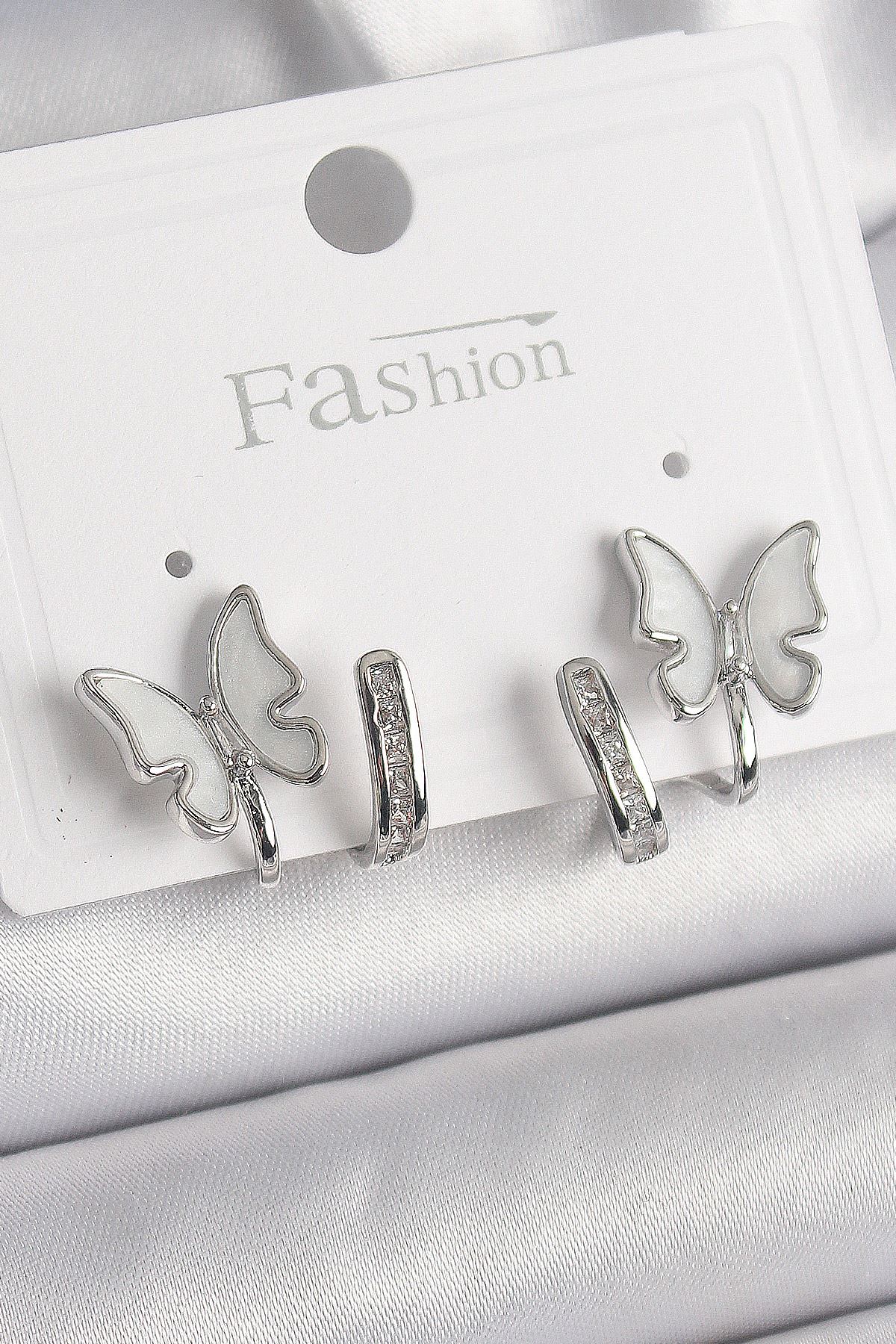 YRTCL Pirinç Gümüş Renk Zirkon Taş Detaylı Beyaz Sedefli Kelebek Model Kadın Küpe