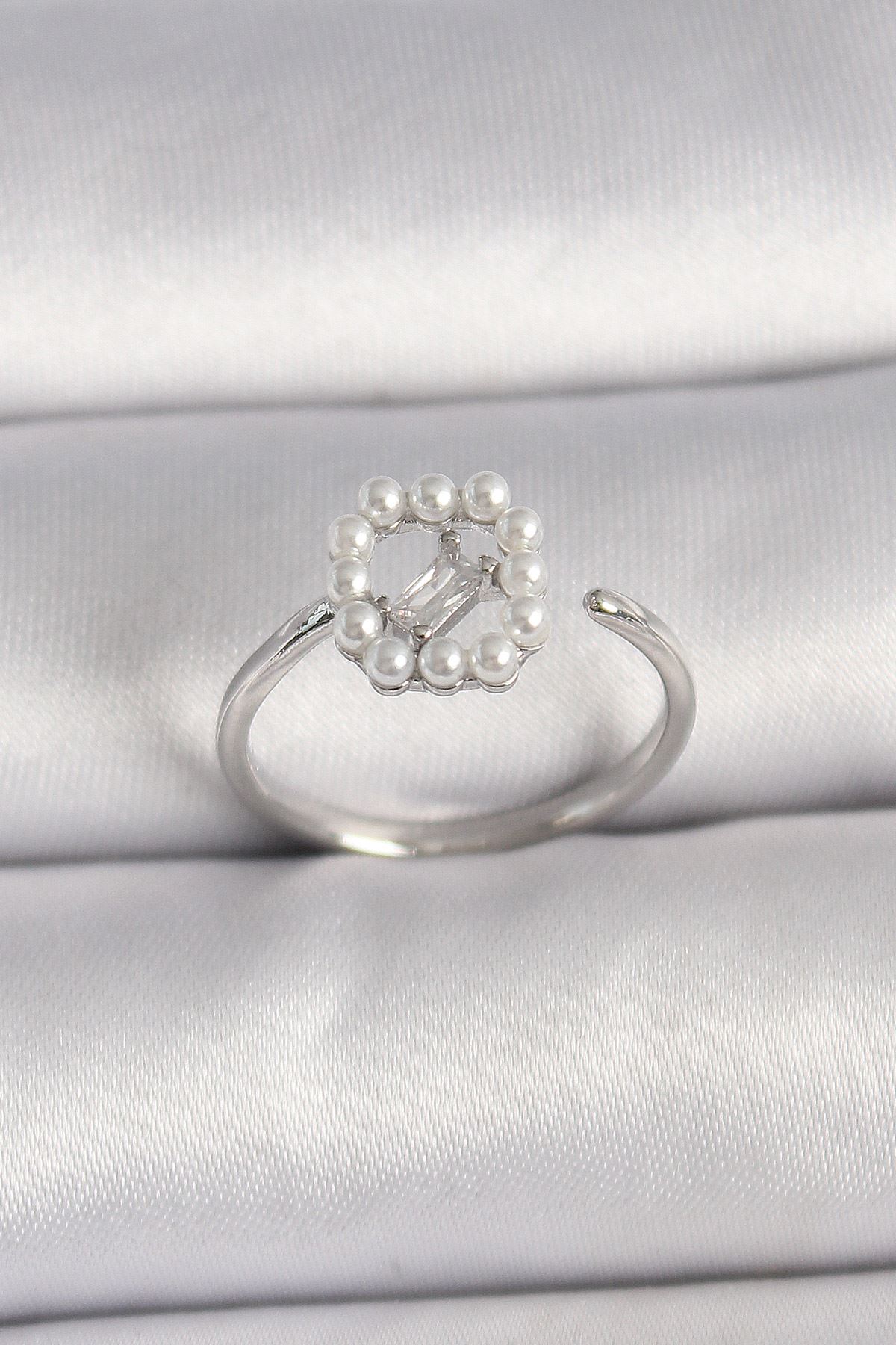 YRTCL Pirinç Gümüş Renk Zirkon Taş Detaylı İncili Ayarlanabilir Yüzük