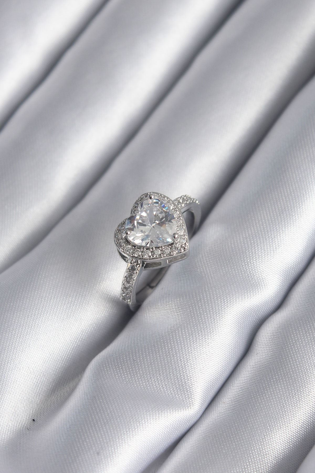 YRTCL Pirinç Gümüş Renk Zirkon Taş Detay Kalp Model Kadın Yüzük