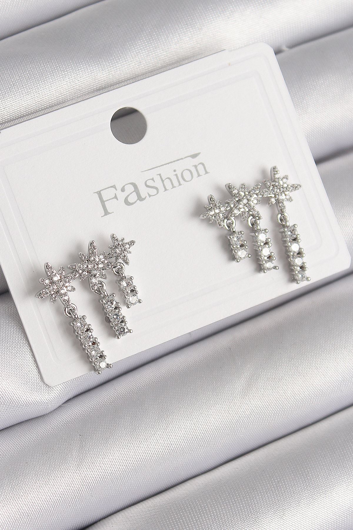 YRTCL Pirinç Gümüş Renk Zirkon Taşlı 3'Lü Sallantı Yıldız Model Kadın Küpe