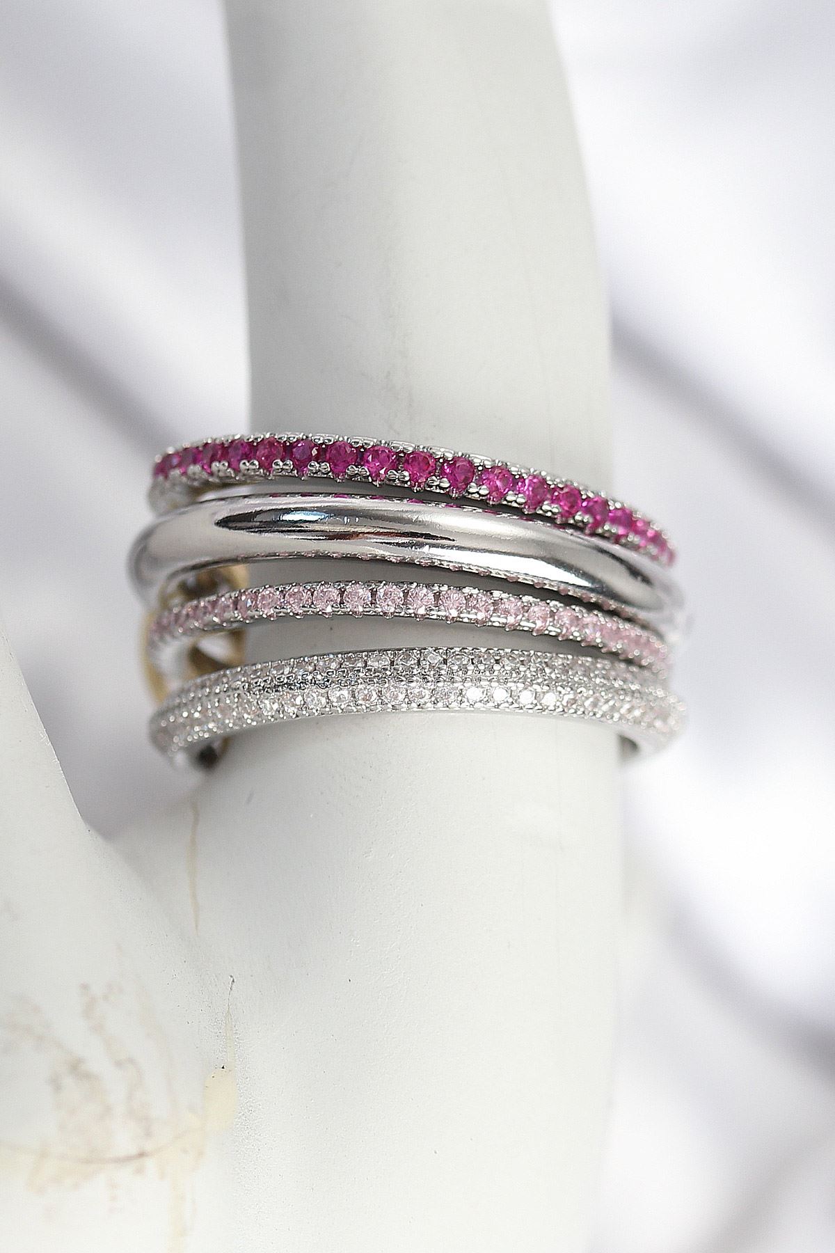 YRTCL Pirinç Gümüş Renk Renkli Zirkon Taşlı Kadın Yüzük