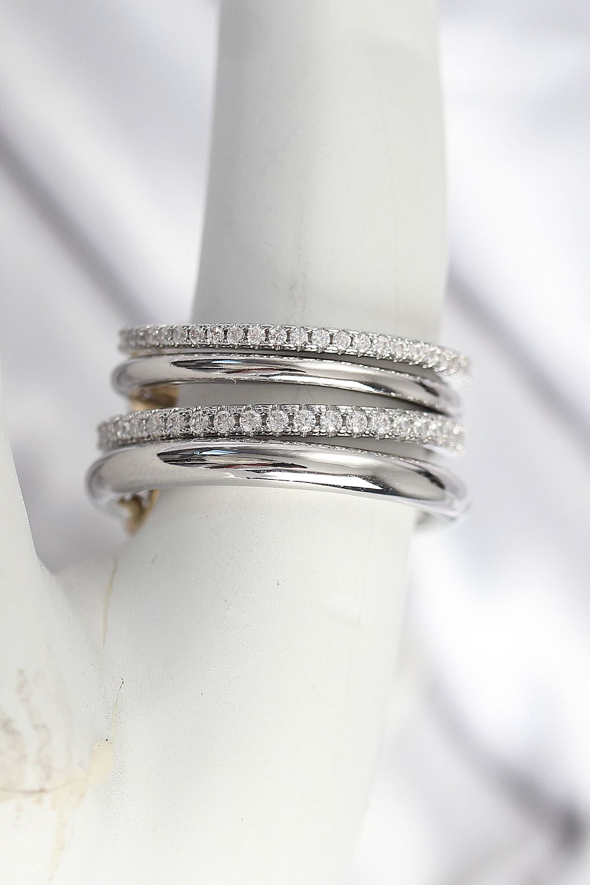 YRTCL Pirinç Gümüş Renk Zirkon Taşlı 4'Lü Kadın Yüzük