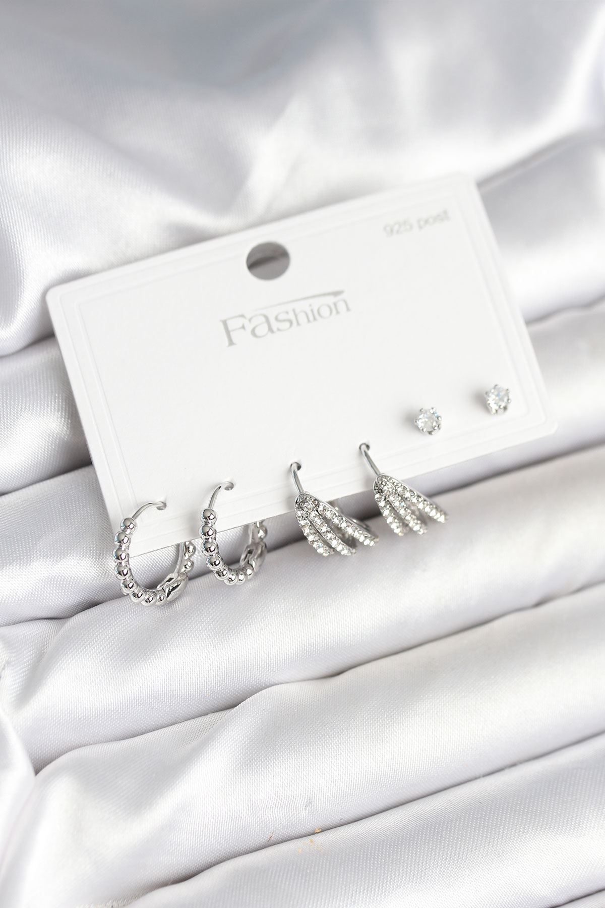 YRTCL Pirinç Zİrkon Taşlı Kelebek ve Yıldız Model Gümüş Renk 3'lü Çift Kadın Küpe