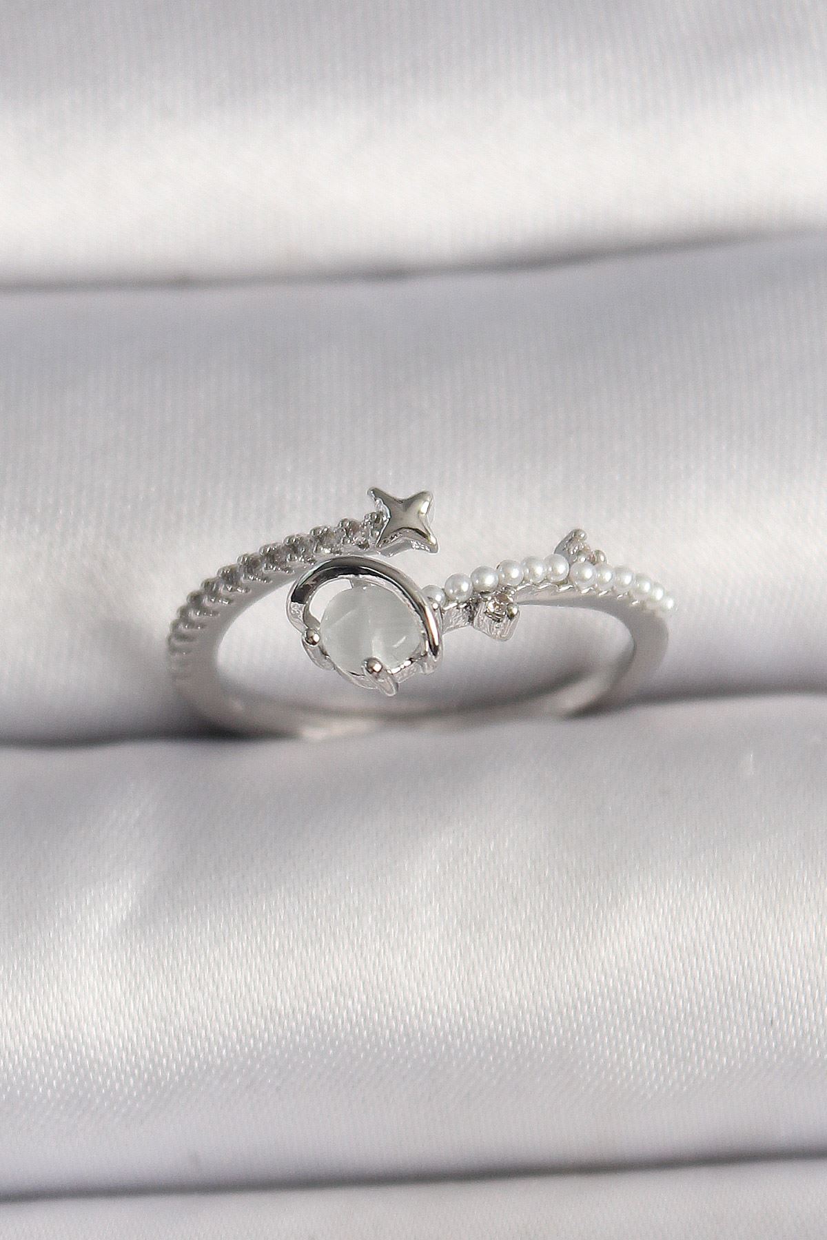 YRTCL Pirinç Gümüş Renk Zirkon Taşlı Beyaz Mineli Yıldız Detay Ayarlanabilir Kadın Yüzük