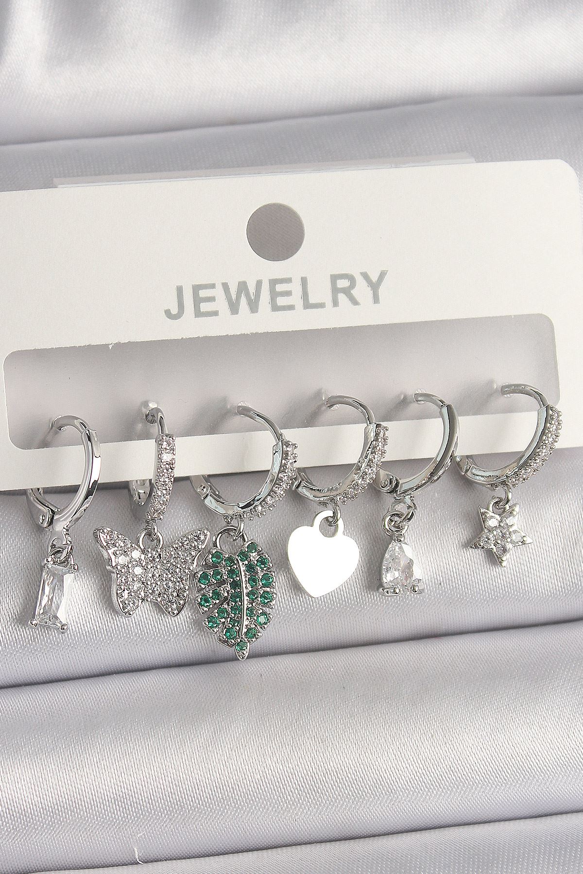 YRTCL Pirinç Gümüş Renk Zirkon Taşlı Çoklu Figür Kadın Küpe Seti