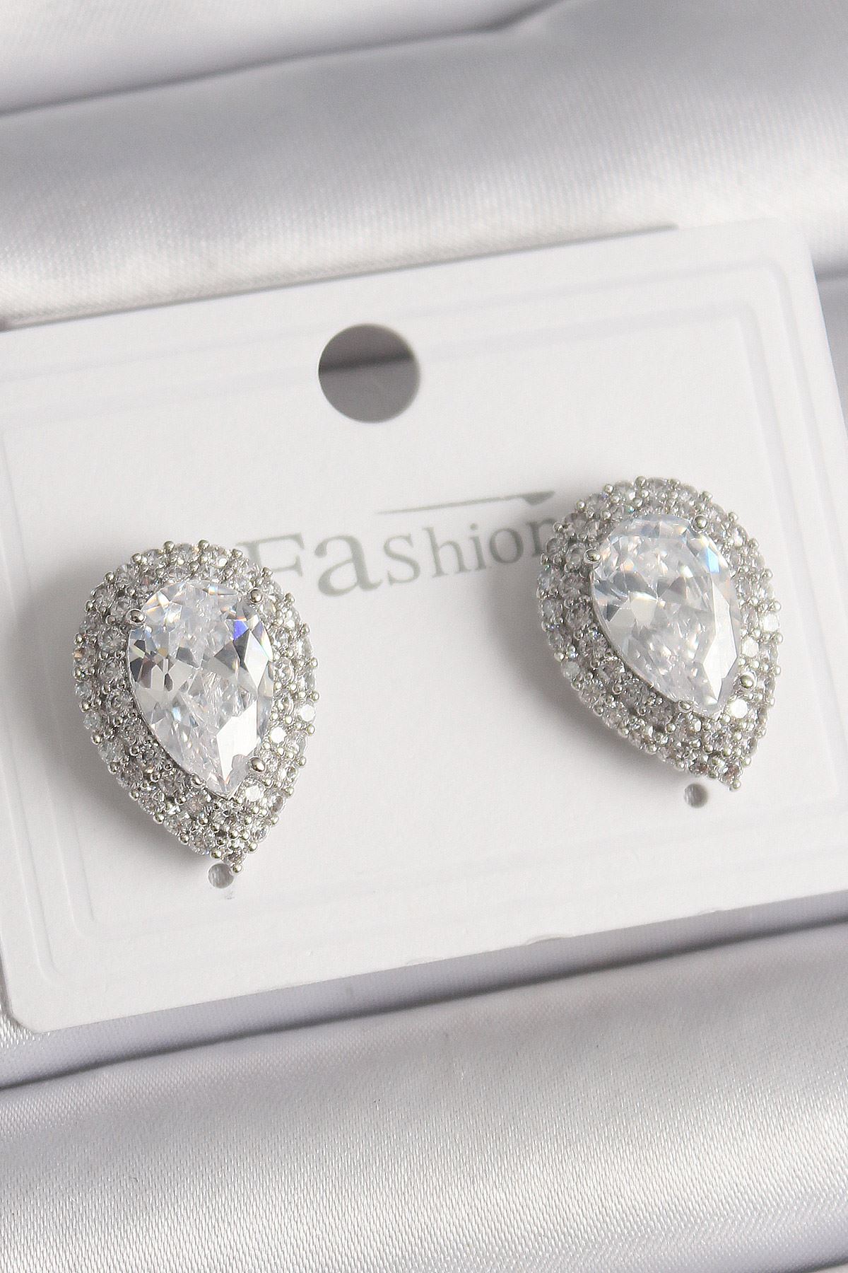 YRTCL Pirinç Gümüş Renk Zirkon Taşlı Damla Model Kadın Küpe