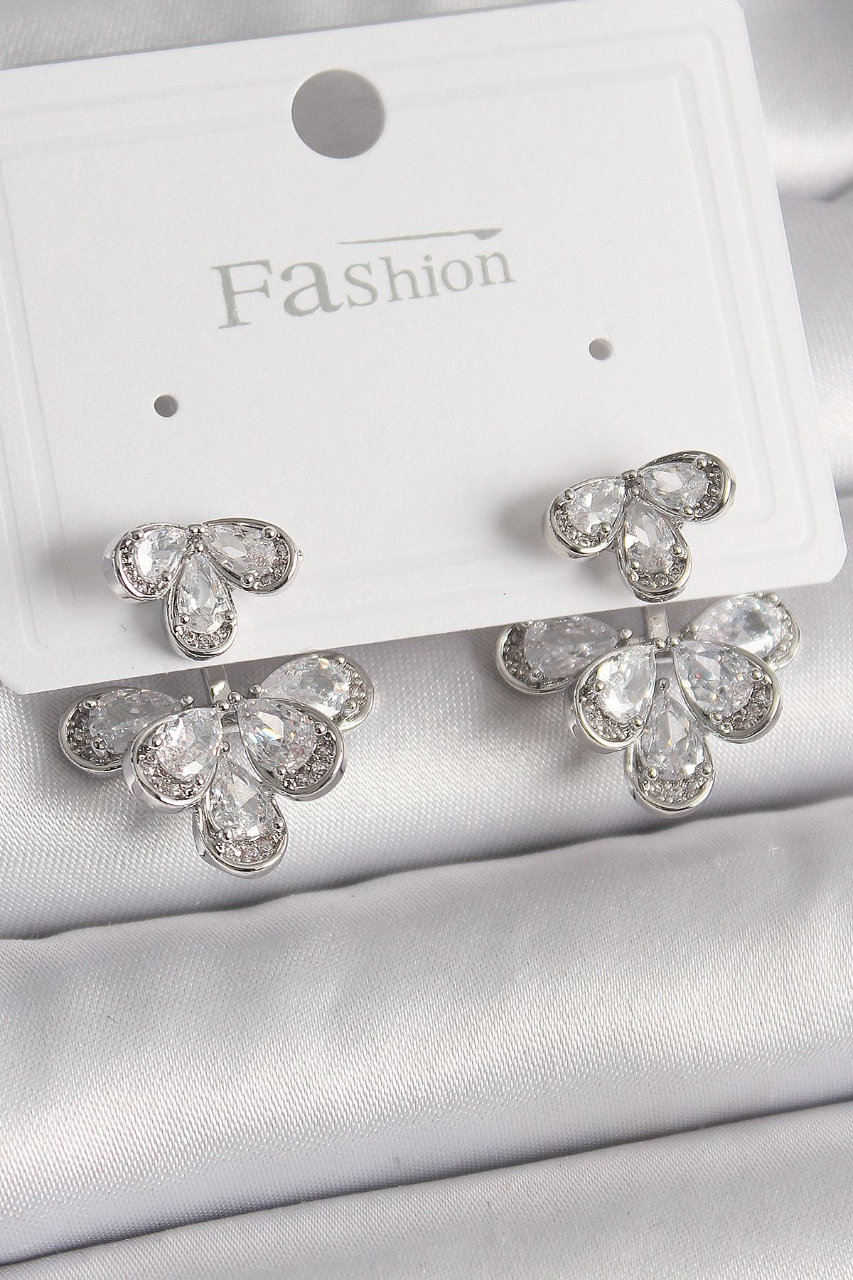 YRTCL Pirinç Gümüş Renk Zirkon Taşlı Damla Model Kadın Küpe