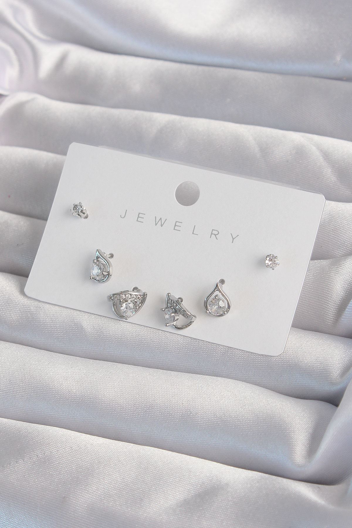 YRTCL Pirinç Zirkon Taşlı Yıldız Model Gümüş Renk 3'lü Çift Kadın Küpe Set